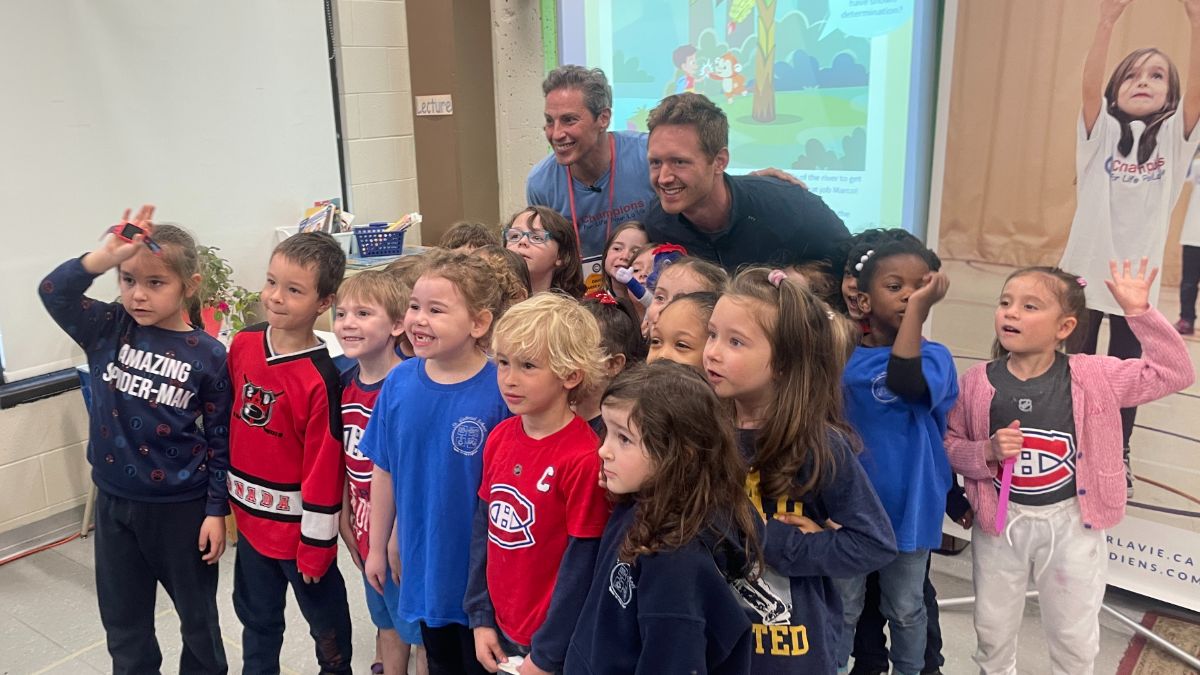 Le joueur des Canadiens de Montréal Mike Matheson s’est rendu lundi matin à l’école primaire St-Gabriel à Pointe-Saint-Charles. La fondation Champions pour la vie est à l’origine de la visite du Montréalais de 29 ans qui avait pour message aux enfants d’«être un champion pour la vie».
