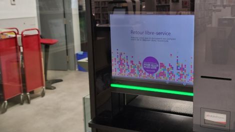 L’utilisation de la technologie a également été accentuée pour optimiser le libre-service et le travail des bibliothécaires. Les documents consultés peuvent maintenant être retournés dans une nouvelle chute à livres automatisée. Leur inventaire se fait grâce à la technologie de radio-identification (RFID) qui permet l’identification et la collecte d’informations d’objets étiquetés d’une puce au moyen d’un lecteur, et ce, sans intervention humaine. Cette technologie réduit, entre autres, le travail manuel des bibliothécaires et les libère pour répondre aux besoins des usagers. Les espaces de transit ont aussi été réaménagés et sécurisés pour le personnel afin de faciliter le traitement des ouvrages interbibliothèques.