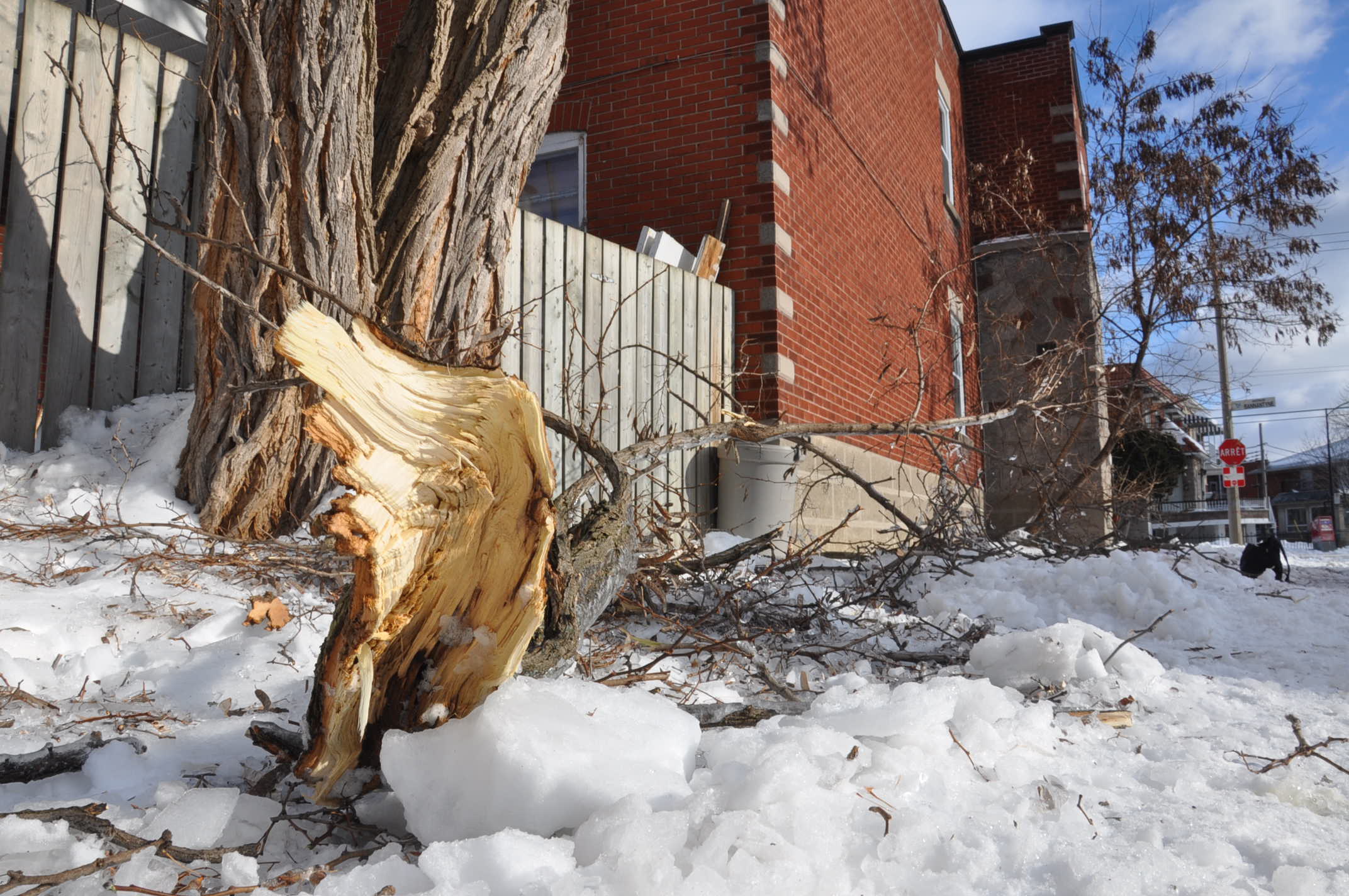 Pendant une douzaine d’heures, des résidents d’un vaste secteur allant de la rue Rolland jusqu’à la 6e Avenue ont greloté faute d’électricité tandis qu’à l’autre bout de Verdun, les passants devaient se frayer un chemin entre les branches au parc du Souvenir devant la mairie, transformée en patinoire.