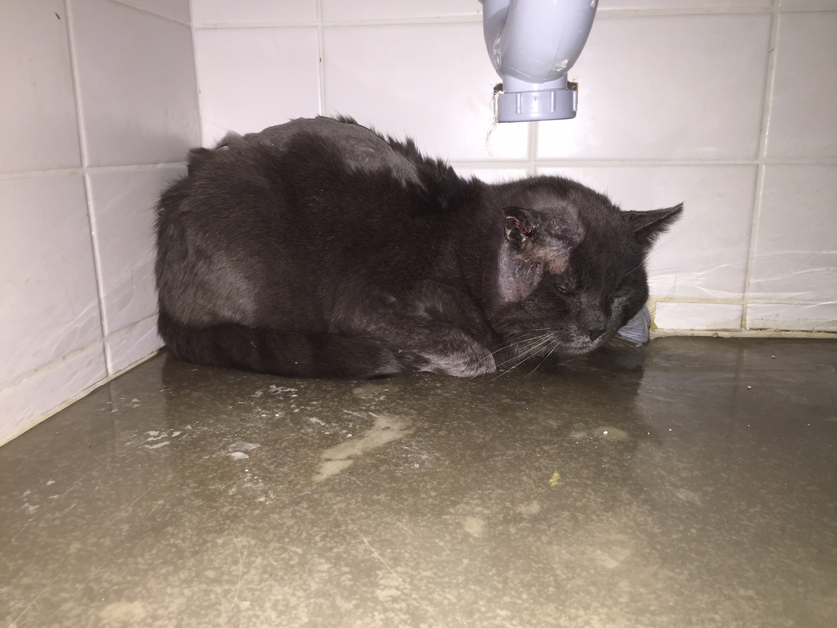 Max, retrouvé errant dans une ruelle, a perdu un bout d’oreille; conséquence d’une violente bataille de gouttière.