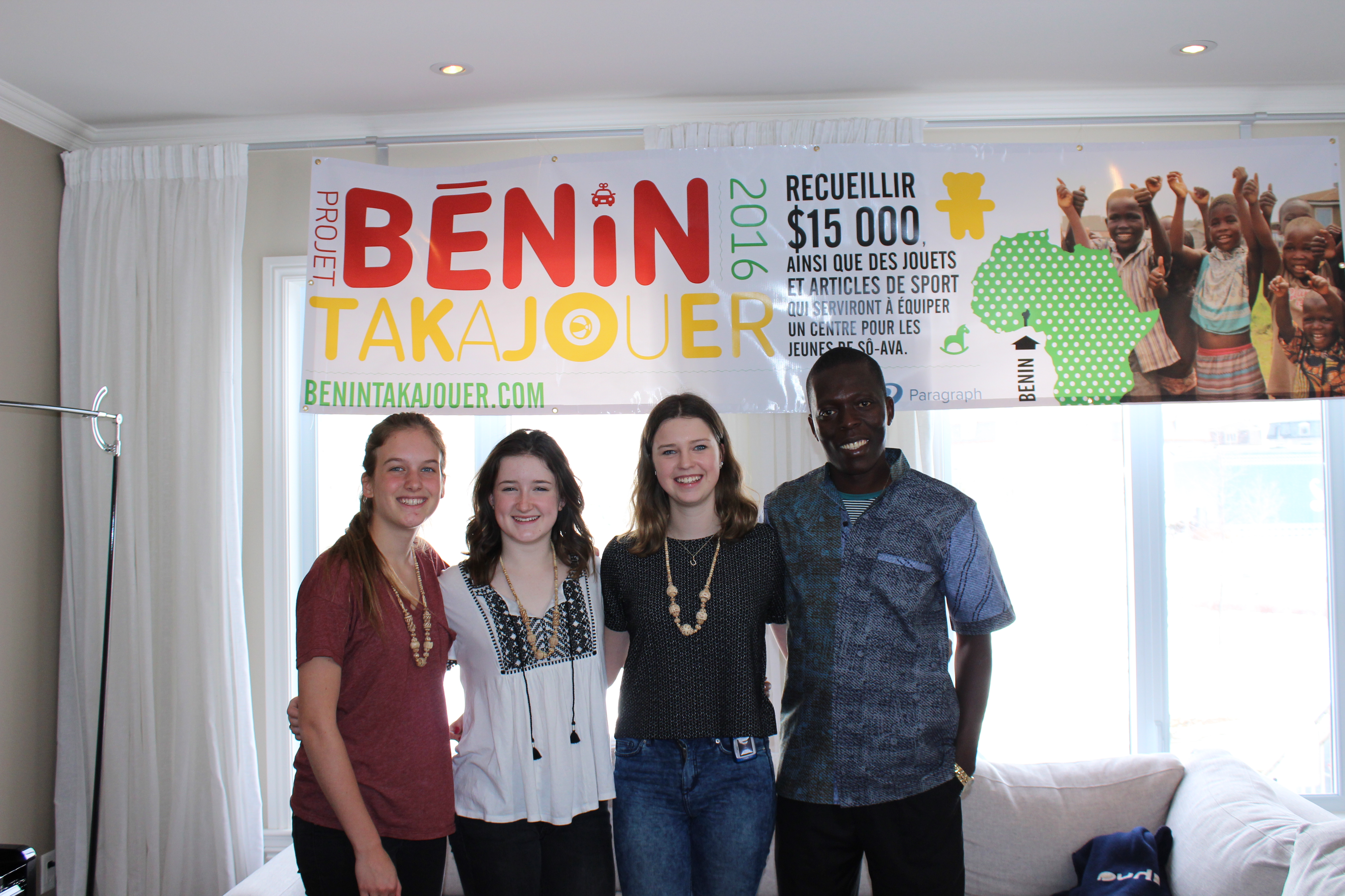 En janvier 2016, les trois filles de 16 ans partiront en direction du village sur pilotis So-Ava au sud-est du Bénin. Gabrielle raconte qu’elle a été touchée d’apprendre que, plusieurs enfants travaillent dès leur plus jeune âge et que seulement un petit nombre auront la chance d’aller à l’école. De plus, pratiquement aucun équipement de jeu ou de sport n’est mis à leur disposition.