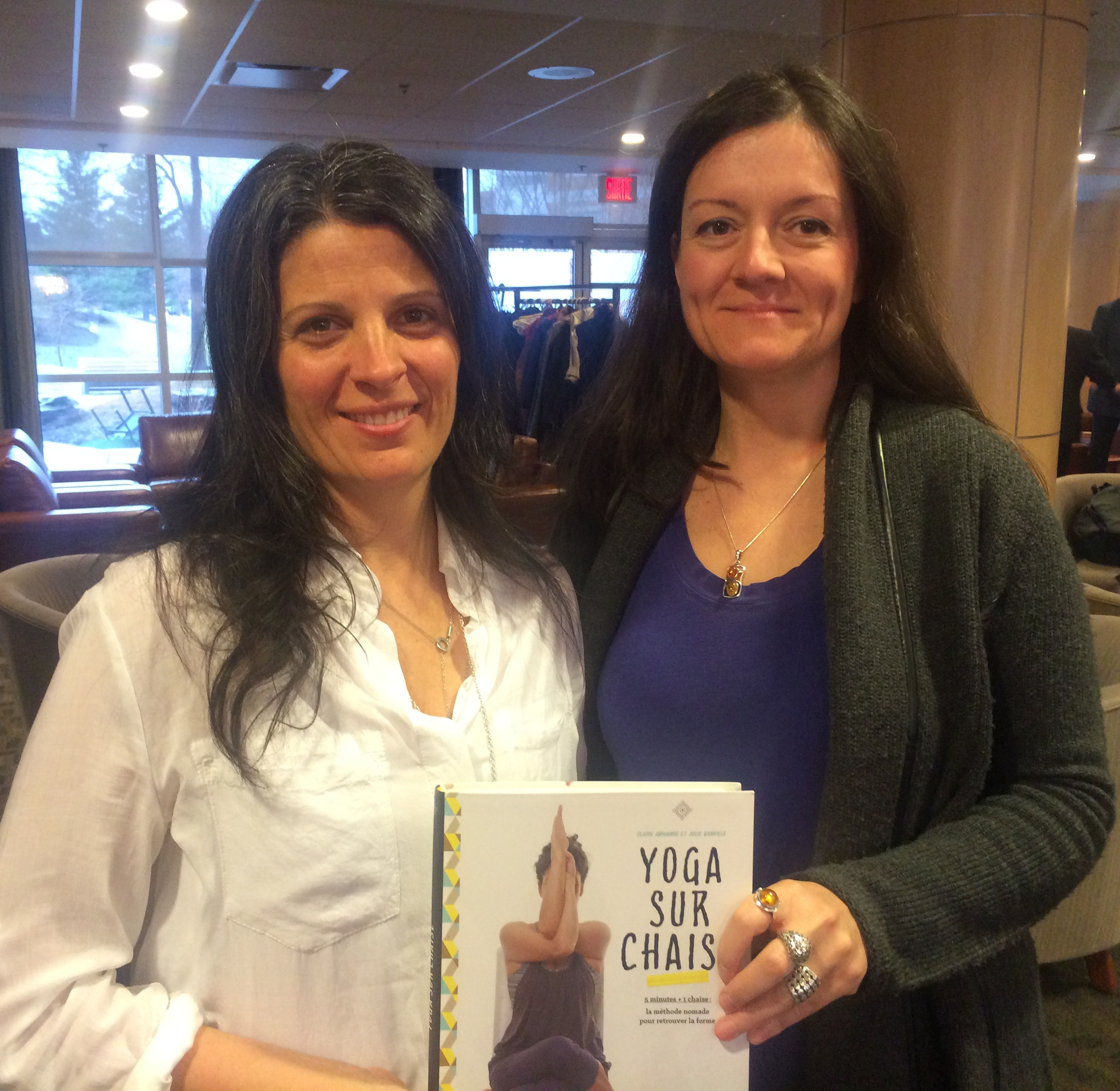 Après le « hot yoga », voici peut-être la nouvelle tendance : le yoga sur chaise. Julie Banville de l’Île-des-Sœurs et Claire Armange de Brossard sont des adeptes de cette pratique qui permet de s’étirer et de diminuer son stress au bureau ou dans tout autre endroit restreints.