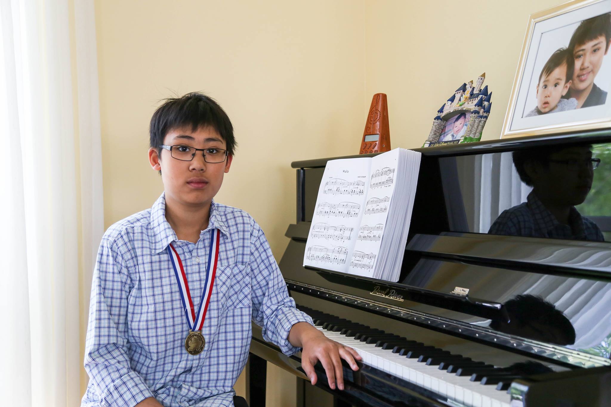 Âgé de 11 ans, Eric Lu suit des cours de piano avec Alexandra Delgado depuis son arrivée au Canada, il y a quatre ans. Pour obtenir le niveau or, il dut réussir à obtenir une note de 90 % ou plus.
