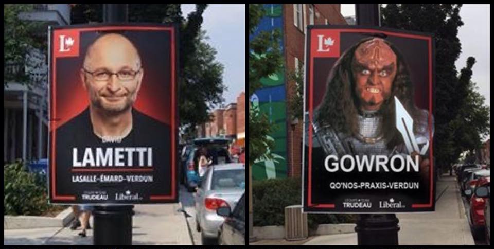 Des fans de la série américaine Star Trek ont joué un tour au candidat de LaSalle-Émard-Verdun, David Lametti. Des internautes ont modifié la photo du libéral en le remplaçant par Gowron, un politicien des Klingon. L’image circule maintenant sur les réseaux sociaux.