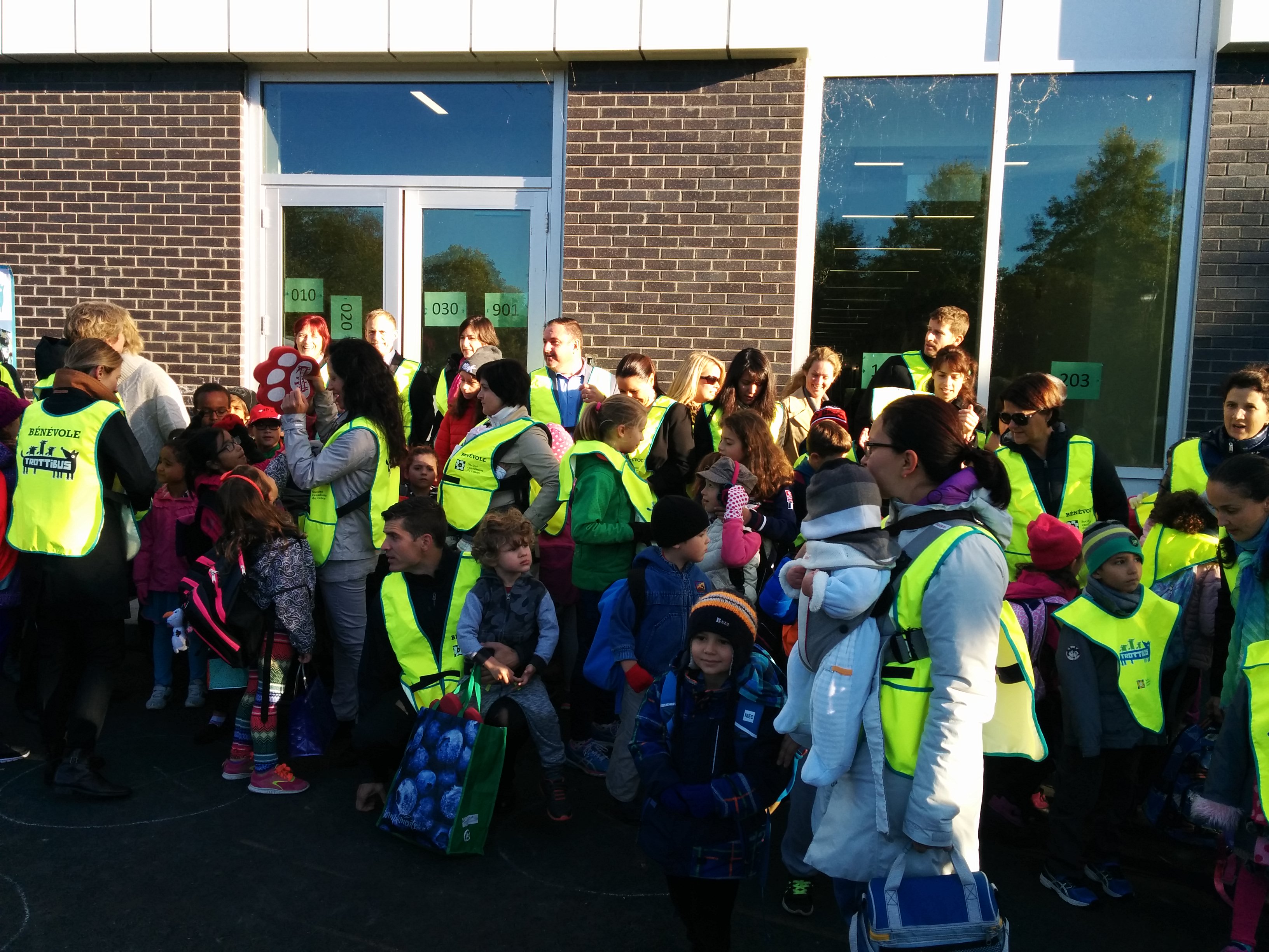 La nouvelle école primaire était tout indiquée pour accueillir le trottibus puisqu’il n’y a pas d’autobus scolaire desservant l’institution. Le projet cadre d’ailleurs dans l’objectif initial de l’arrondissement de créer une école de marcheur.