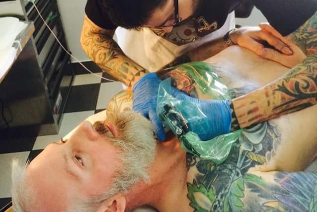 Le temps passé sur la chaise de son tatoueur et ami de longue date, Pierre Chapelan, à qui il donne carte blanche, ne se compte plus, mais doit franchir le cap des mille heures. «Mon tatoueur connait l’historique de ma vie donc quand il me tatoue quelque chose, c’est basé sur sa compréhension de Sterling».