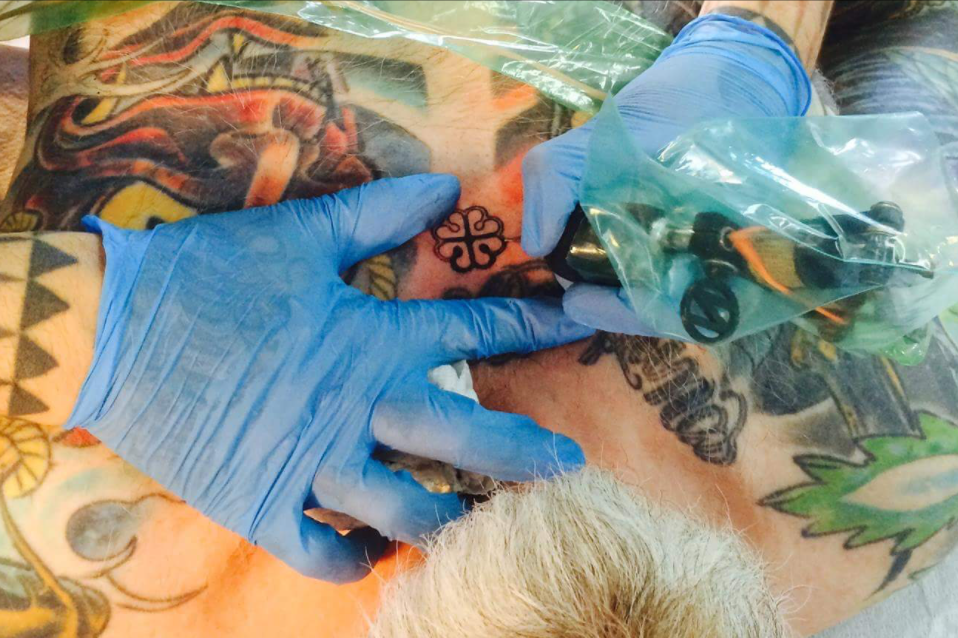 C’est à l’âge de 14 ans qu’il a eu son premier tatouage, la phrase «Made in Canada» sur la tête. À ce moment, il tentait de se révolter contre les règles de son école secondaire semi-privée et de se protéger de l’intimidation dont il était victime.