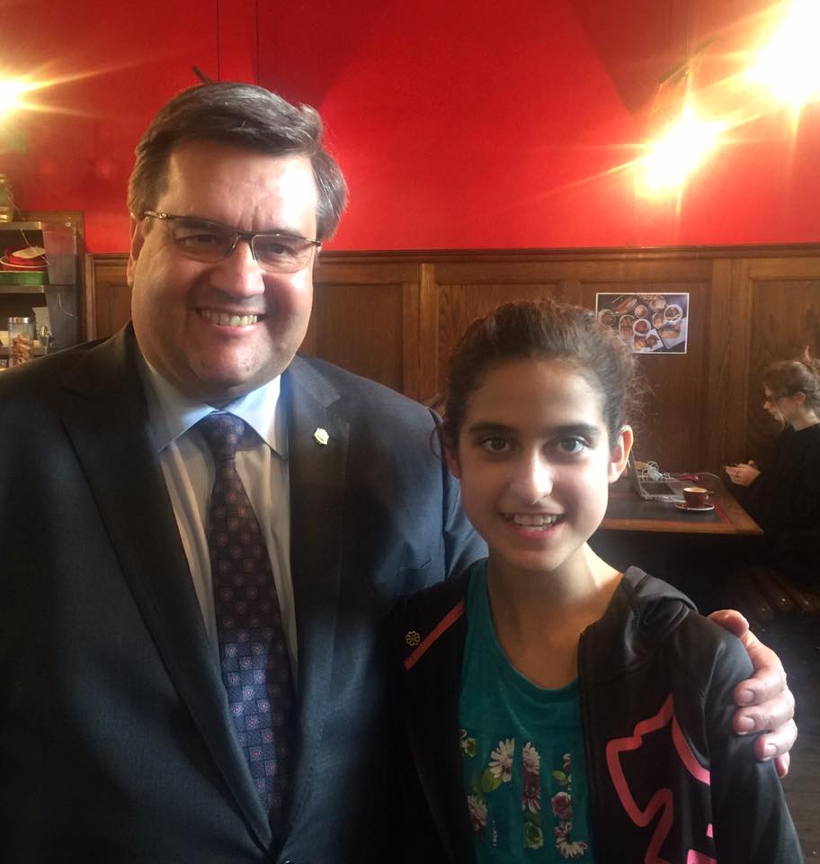 Après un dîner avec les conseillers municipaux, la gagnante de l’Expo-sciences de son école a rencontré le maire de Montréal, Denis Coderre. Ce dernier en a profité pour assurer Kiana qu’il voterait pour elle lorsqu’elle se présenterait dans quelques années.