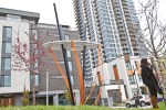 «Mon mandat, c’était de définir le square devant la nouvelle tour Evolo X. Le promoteur Samuel Gewurz voulait qu’il y ait des sculptures, mais on voulait qu’il y ait une interaction dynamique avec l’œuvre et que ça soit utile. Il a finalement suggéré le travail de Linda», indique l’architecte-paysagiste de la firme Robitaille & Curtis, Sophie Robitaille.