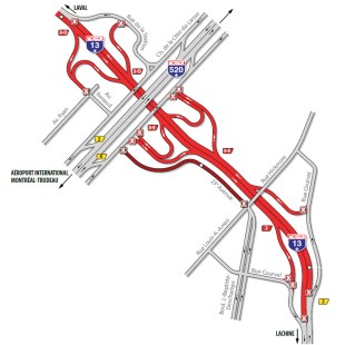 Cette fermeture est nécessaire afin de permettre au ministère des Transports (MTQ) d’installer une passerelle temporaire en préparation du projet de reconstruction du pont d’étagement de l’autoroute 520 au-dessus de l’autoroute 13.