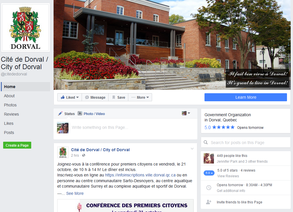 « Il était grand temps pour Dorval de moderniser sa façon de communiquer avec ses citoyens, a déclaré le maire Edgar Rouleau. La création de nos pages Facebook nous permet de rejoindre une nouvelle clientèle et de prendre le virage 2.0.»