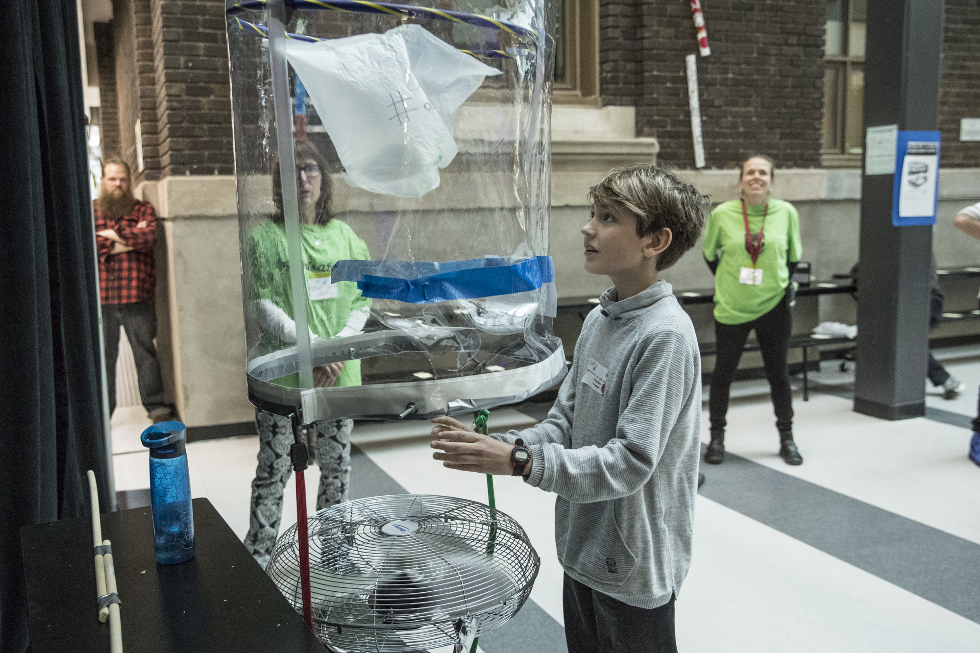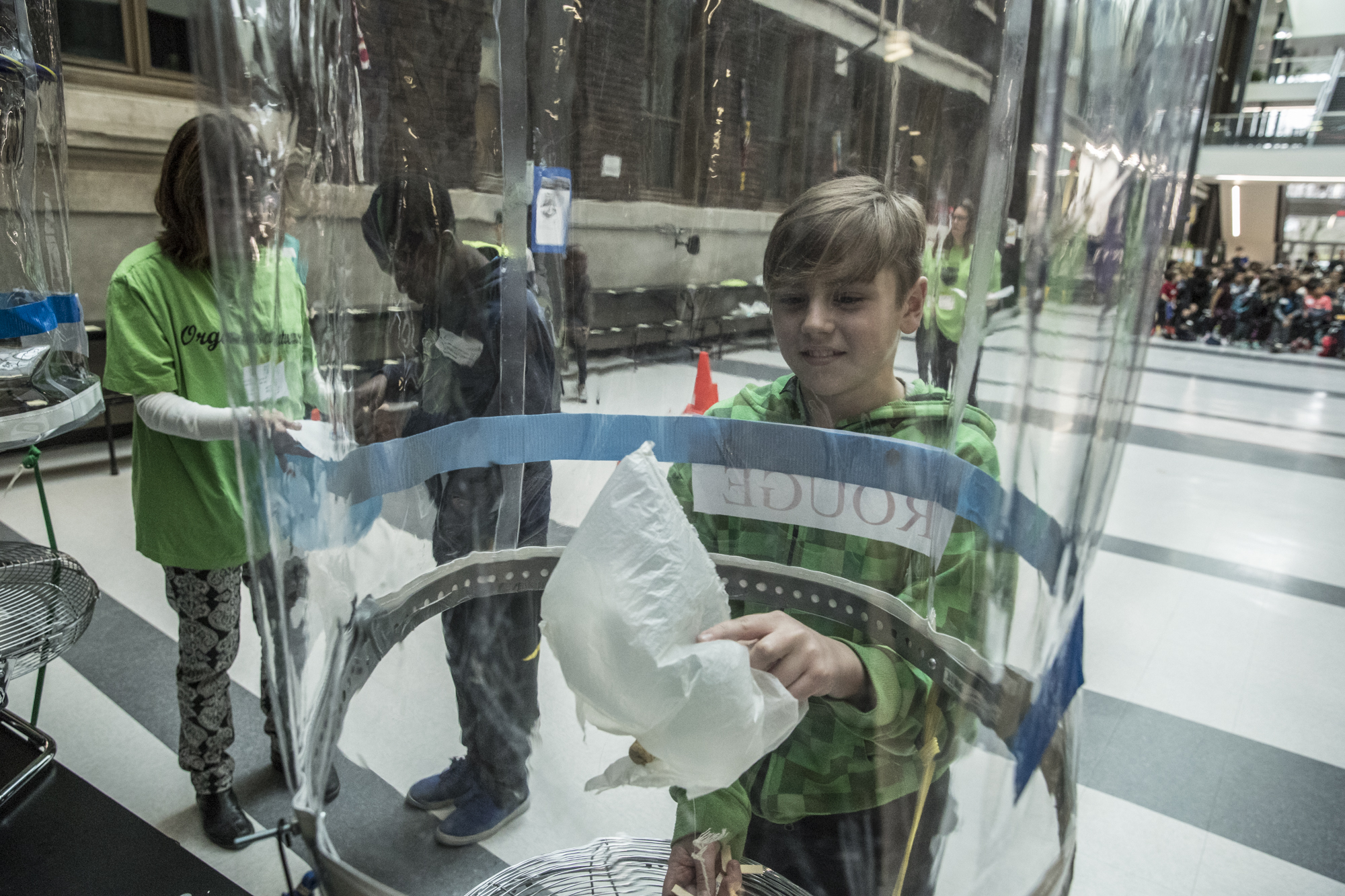 À l’occasion de la 10e édition de la Ligue d’Improvisation en Science et technologie (LIST), des élèves du primaire et du secondaire ont usé de leur imagination et de leurs connaissances tout en développant leur capacité de travailler en équipe afin de confectionner un appareil capable de s’élever verticalement dans une soufflerie.