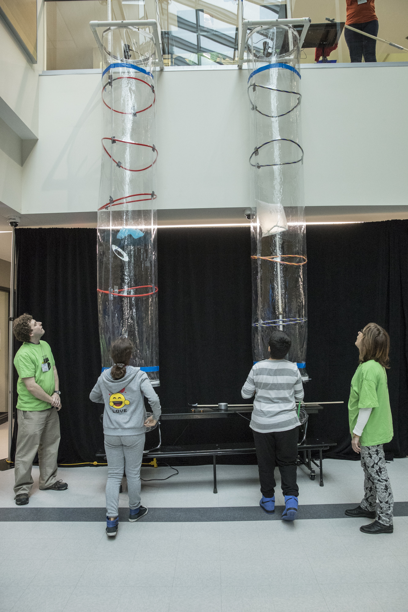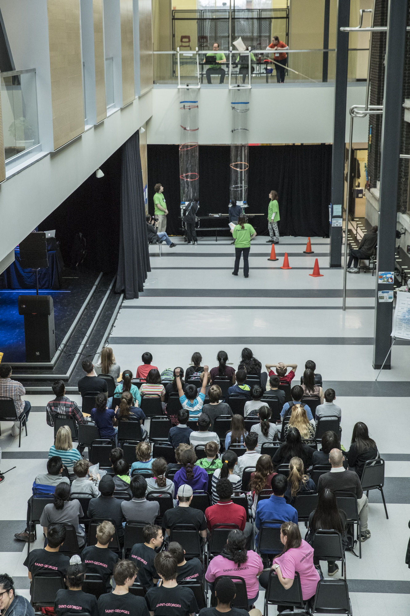 À l’occasion de la 10e édition de la Ligue d’Improvisation en Science et technologie (LIST), des élèves du primaire et du secondaire ont usé de leur imagination et de leurs connaissances tout en développant leur capacité de travailler en équipe afin de confectionner un appareil capable de s’élever verticalement dans une soufflerie.