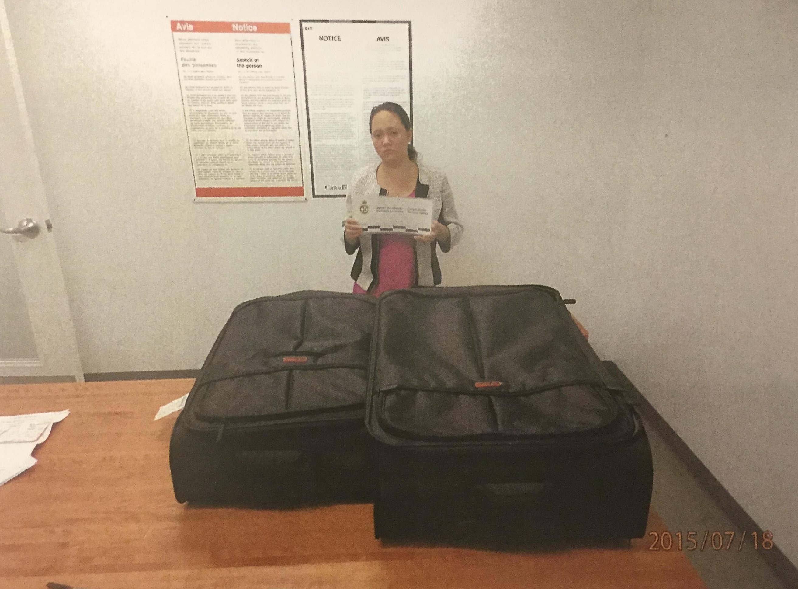 Les agents des services frontaliers ont eu la puce à l’oreille après des tests sommaires. Une rigidité inhabituelle et du ruban adhésif noir sur le côté des deux valises ont trahi la cache. En perçant le double fond, ils ont découvert l’héroïne pure à 38%.