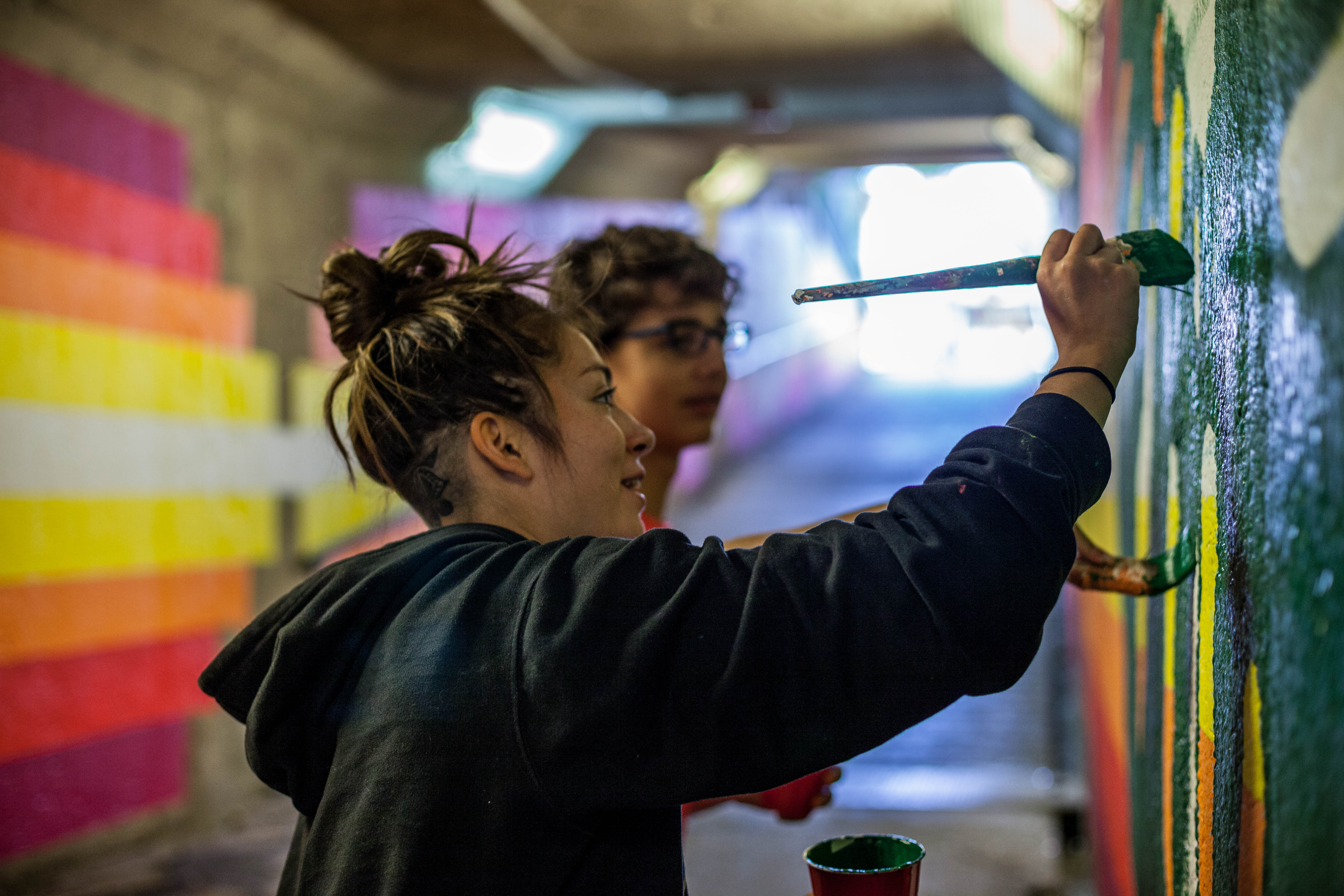La création d’une murale dans le tunnel piétonnier près de l’avenue Duranceau mettra du baume au cœur des résidents du quartier Saint-Pierre, à Lachine. Les nouvelles couleurs illuminent désormais ce secteur aux prises avec des problématiques d’enclavement et de criminalité.