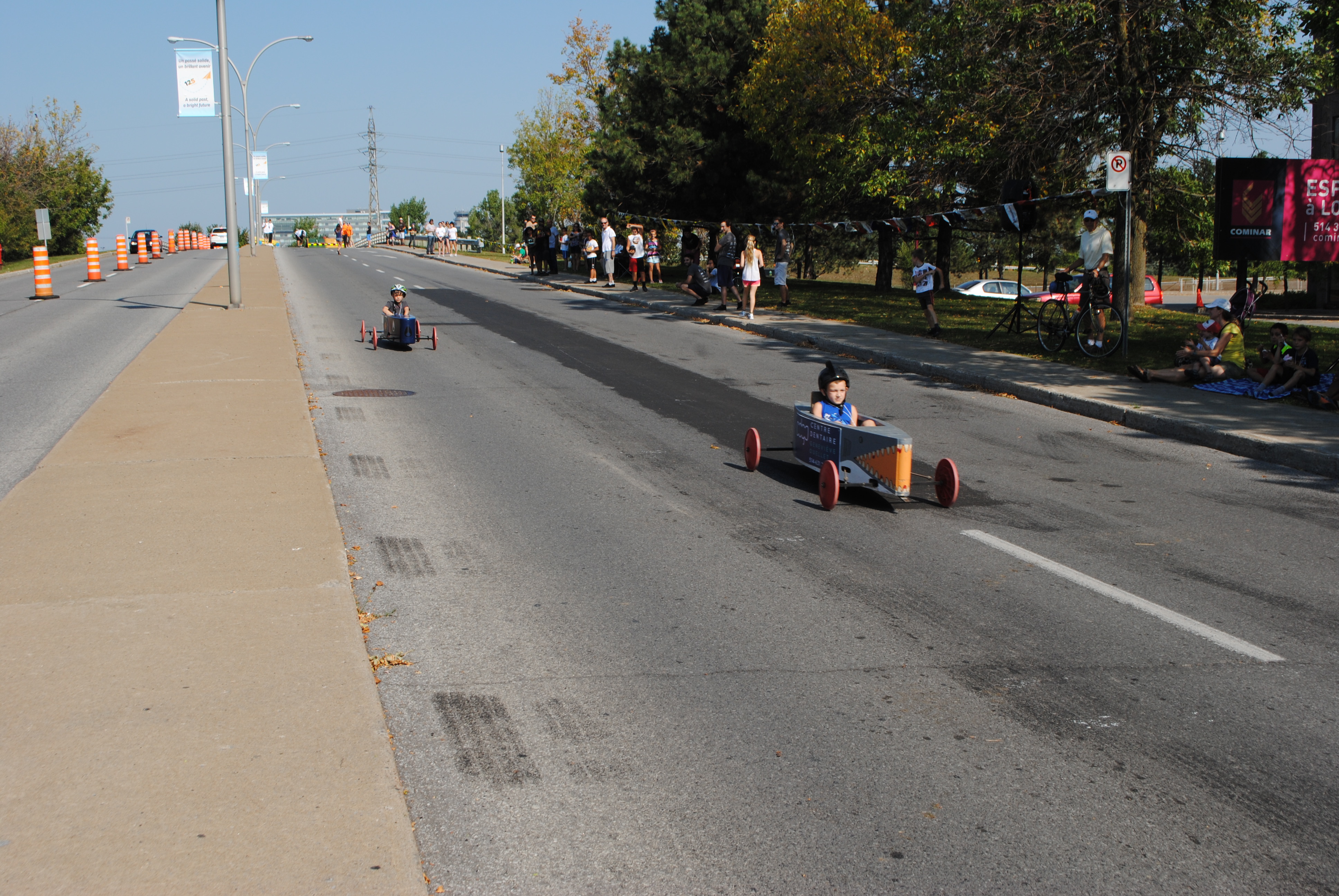 This year also marked the first appearance of some VIPs, as the École de technologie supérieure (ETS) came with a prototype single-rider car, and Bombardier showed off their own Soap Box racer built by some young engineers. Both were welcomed and admired by the kids and their parents.