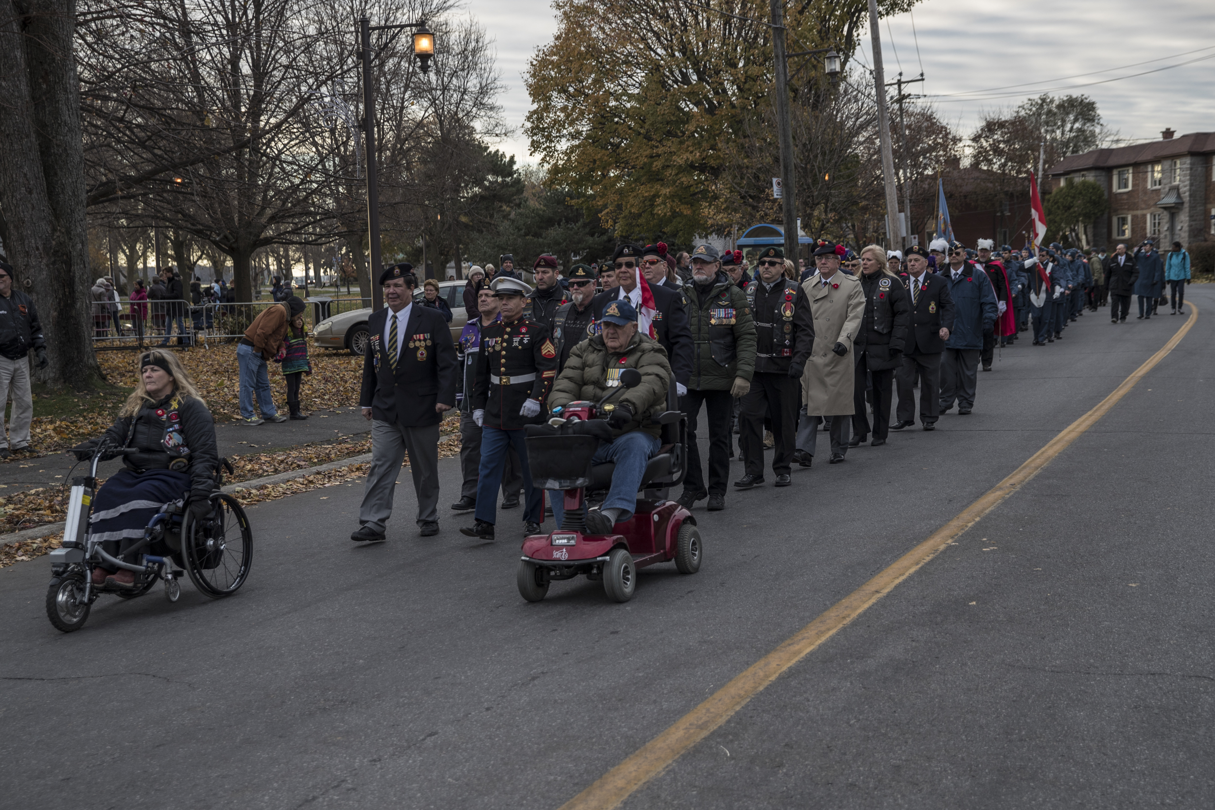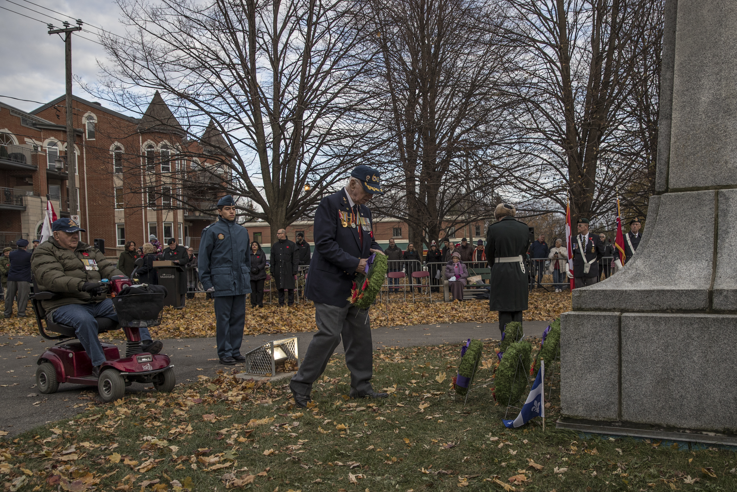 L’émotion était palpable autour du cénotaphe, vers 14h. Des militaires et des cadets vêtus de leur uniforme et arborant le coquelicot ont marché solennellement dans les rues de Lachine.