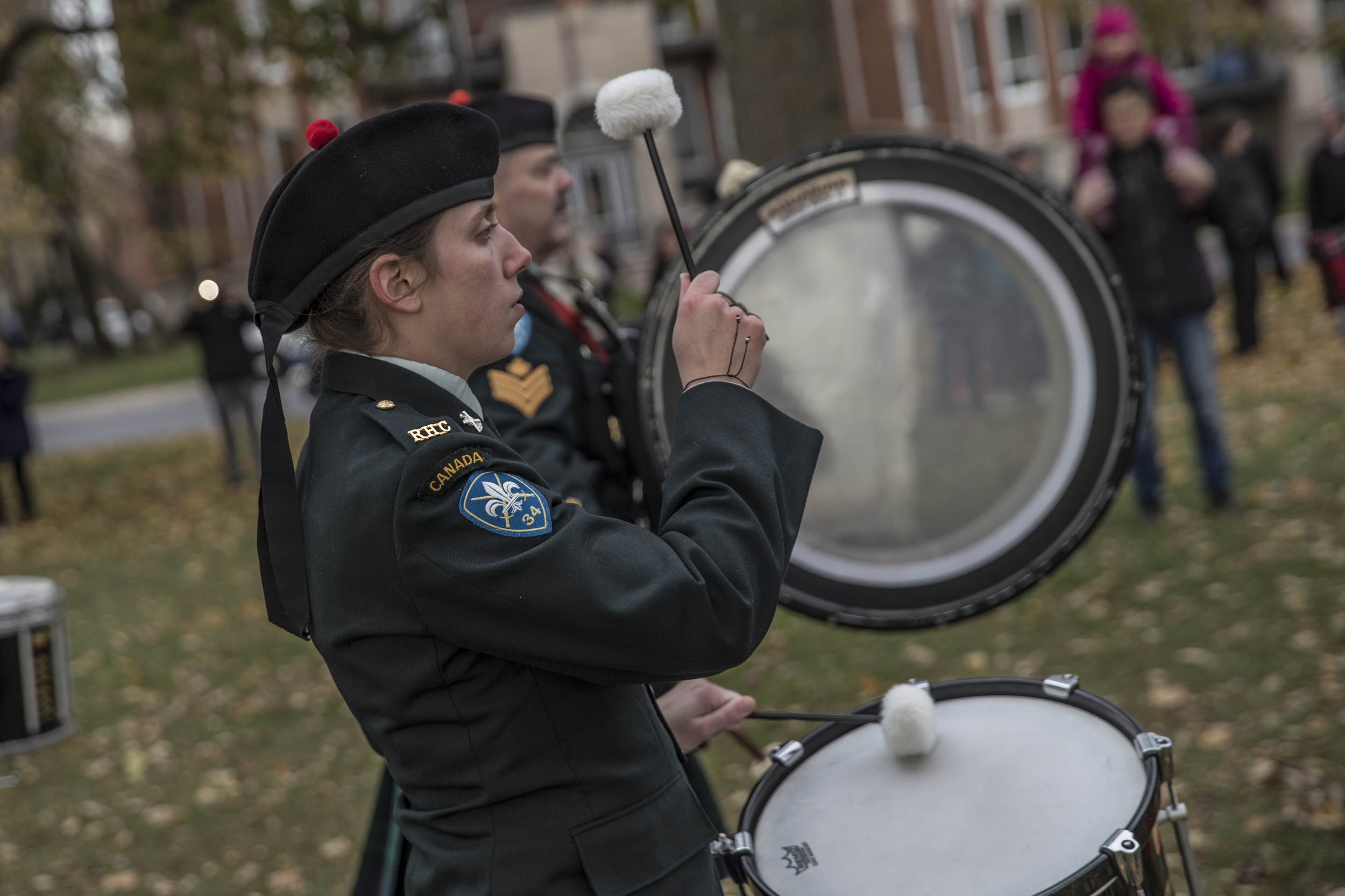Des discours, entremêlés de morceaux de musique militaire à la cornemuse et de coups de canon, ont rappelé le sacrifice des soldats canadiens. Dans la foule, les yeux embués de larmes, femmes et hommes ont évoqué la perte de ceux disparus au combat.
