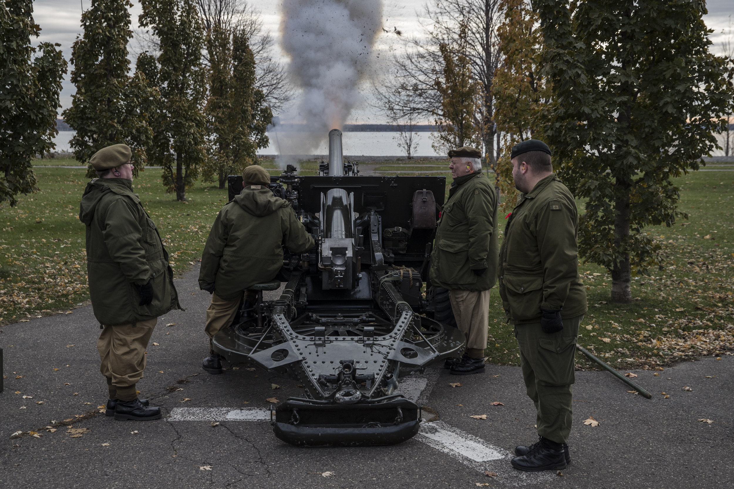 Des discours, entremêlés de morceaux de musique militaire à la cornemuse et de coups de canon, ont rappelé le sacrifice des soldats canadiens. Dans la foule, les yeux embués de larmes, femmes et hommes ont évoqué la perte de ceux disparus au combat.