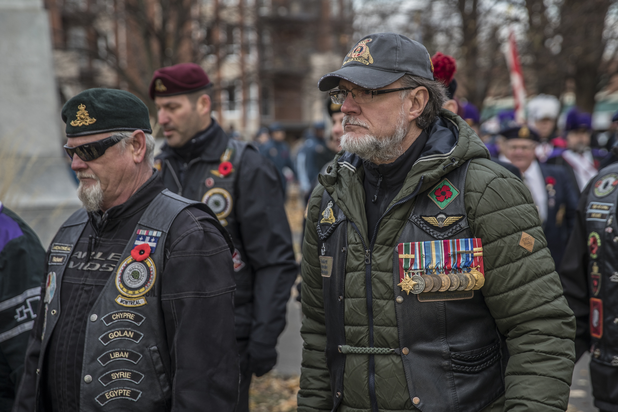 Les décorations militaires sur la veste de l’ancien combattant Yves Renaudin témoignent de sa contribution au pays en temps de guerre. L’homme de 60 ans a participé à neuf missions, notamment en Égypte, en Bosnie et en Haïti.