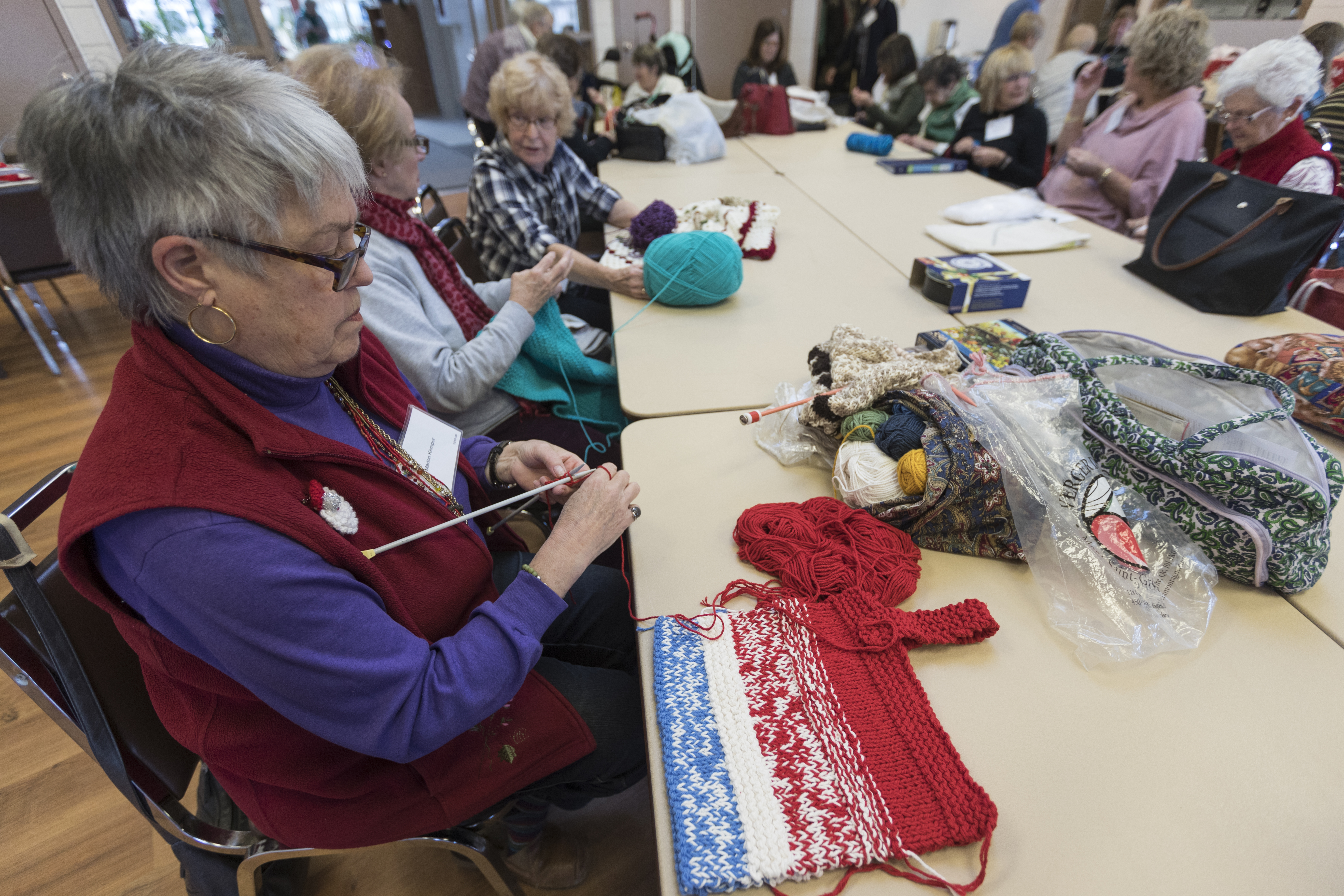 Maille à l’endroit, maille à l’envers, les femmes manipulent soigneusement les aiguilles. Tous les lundis, elles se rassemblent au Centre aquatique et communautaire Surrey, à Dorval.