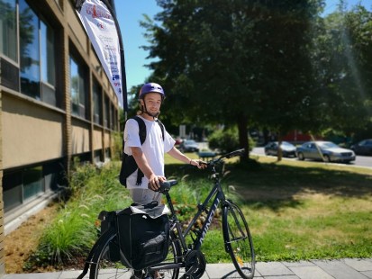 Pour promouvoir Sentinelle en veille, le jeune étudiant en sociologie de 22 ans, Olivier Rousseau, parcourt Lachine à vélo.