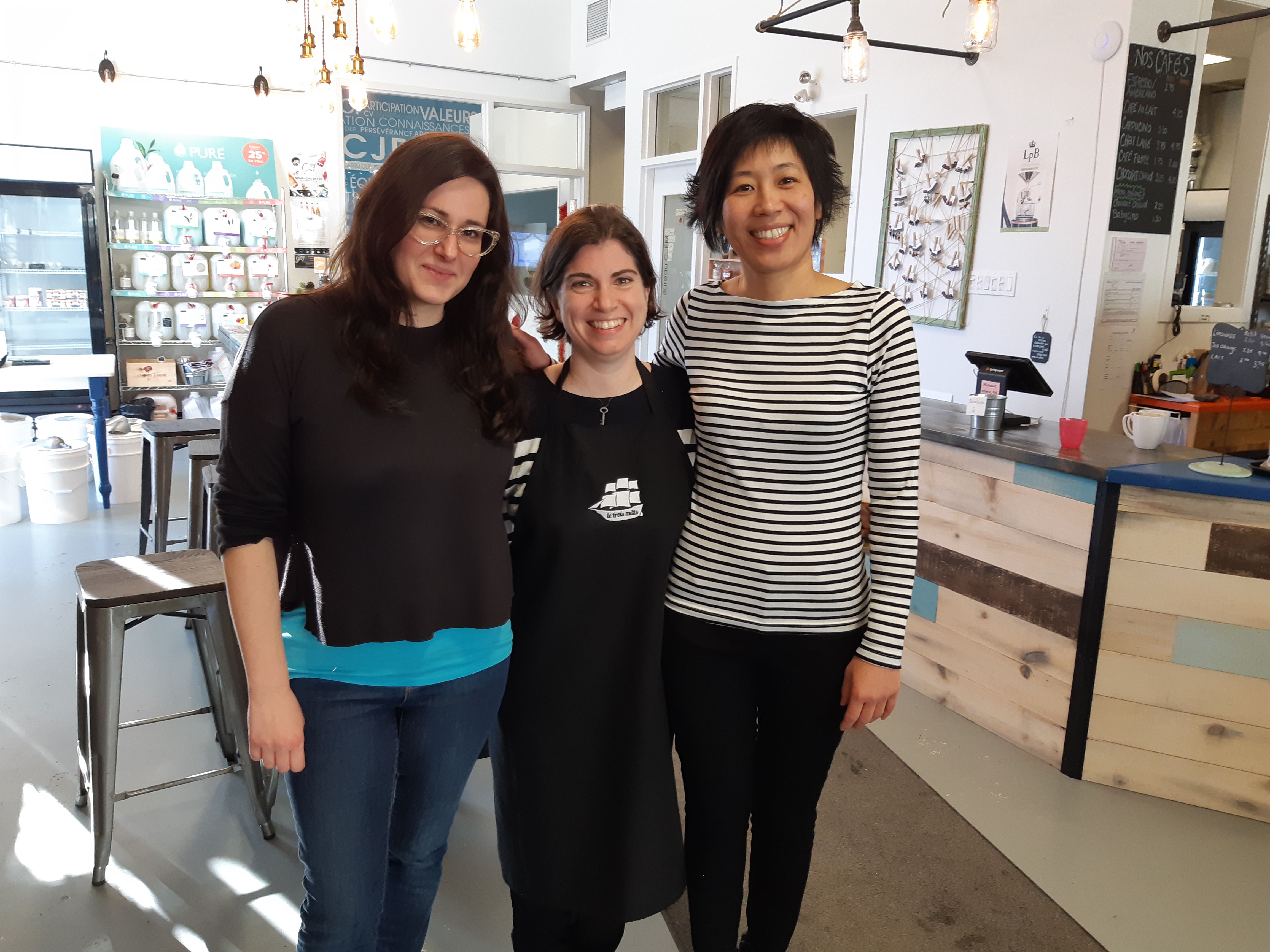 @BV:Les cofondatrices de la coopérative, Marianne Duguay, Sandra Cohen et Élisabeth Pham, ont eu l’aide de bénévoles pour notamment confectionner le mobilier.