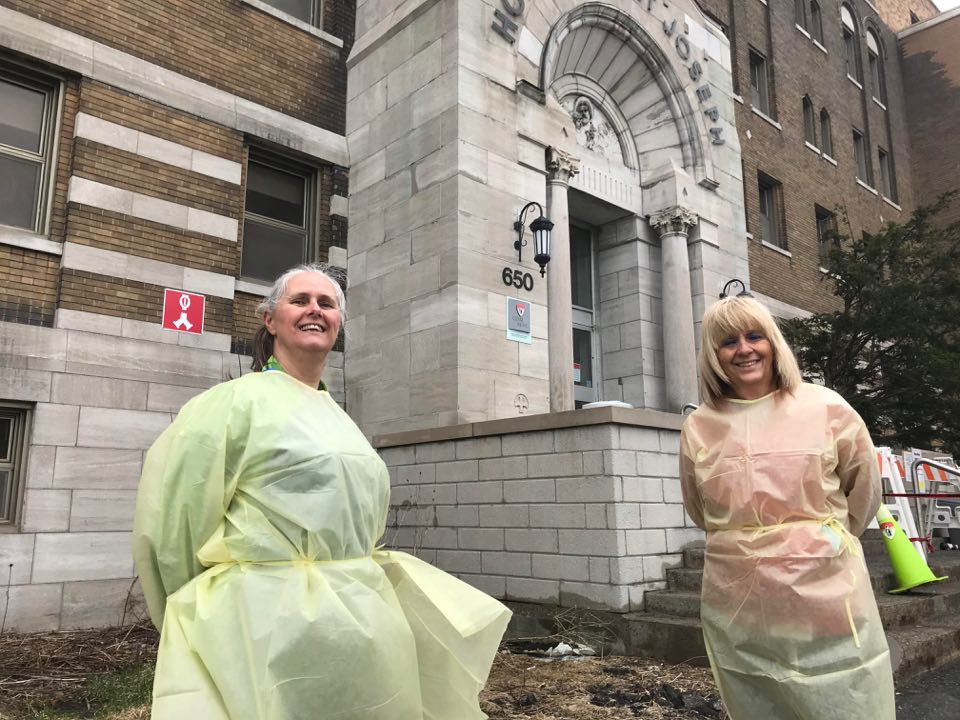 Deux infirmières d’expérience travaillent au triage à l’Hôpital de Lachine. Malgré de longues heures habillées presque en scaphandre, Josée Théorêt et Chantal Richer sont fières d’être de «petits pitbulls», comme elles se qualifient à la blague, en raison de leur rôle de chien de garde.
