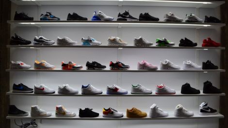 Un gigantesque signe lumineux devrait être installé prochainement, mentionne le gérant. Pour ajouter à l’ambiance, il a également un panier de basket près de l’étagère à souliers.