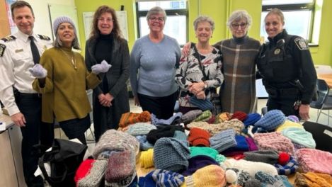 Grâce à un don de 500$ de la Fraternité des policiers de Montréal et à la générosité des tricoteuses de la Clinique Regain de Verdun, 200 élèves de l’école primaire Très-Saint-Sacrement recevront au cours des prochains jours des mitaines, des tuques et des foulards en laine.