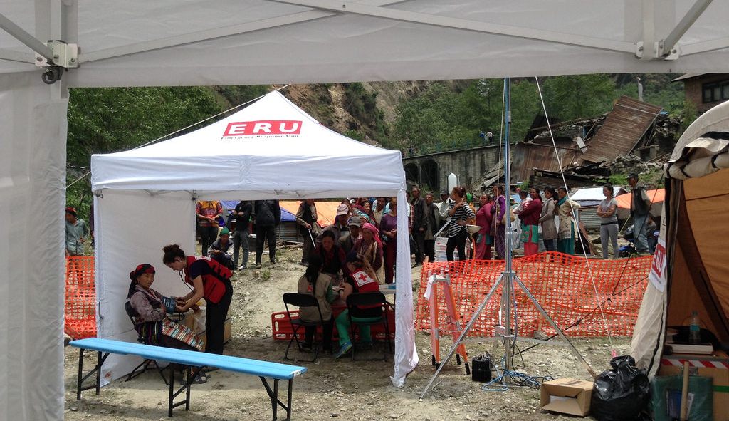 Les installations mobiles de la Croix-Rouge ont pris la relève de l’hôpital de Dhunche, presqu’entièrement détruit par les deux séismes.