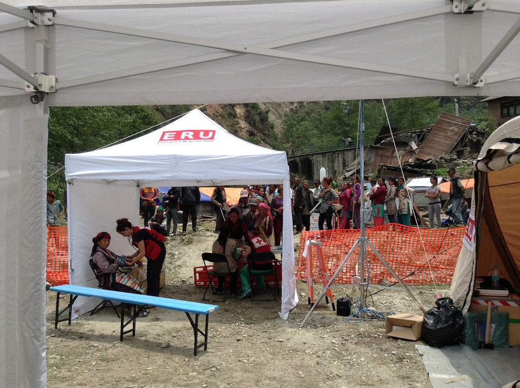 Les installations mobiles de la Croix-Rouge ont pris la relève de l’hôpital de Dhunche, presqu’entièrement détruit par les deux séismes.