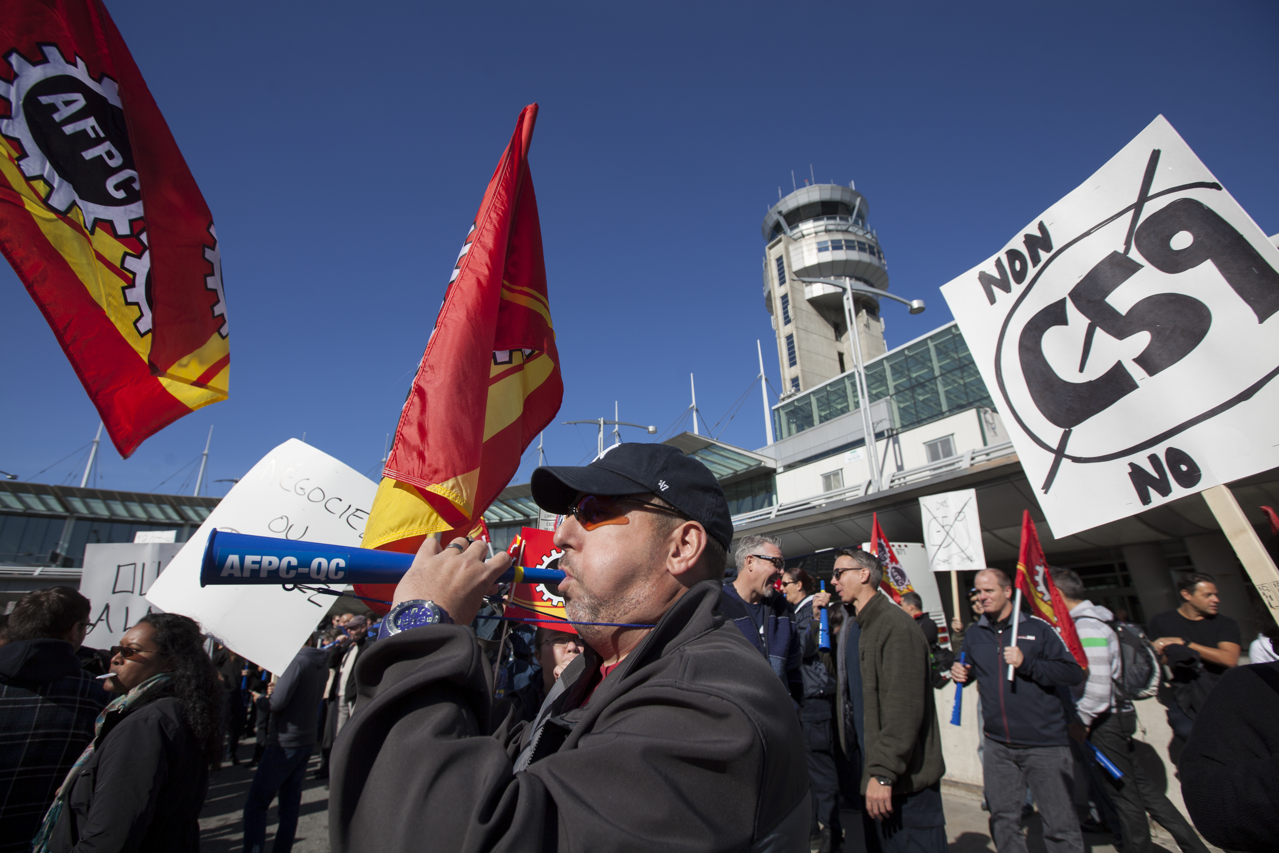 Près de 200 employés de l’Agence des services frontaliers ont manifesté leur mécontentement le matin du 8 octobre, devant les portes de l’aéroport Pierre-Elliott Trudeau. Les manifestants affirment que les coupes d’effectifs réalisées par Ottawa depuis deux ans représentent un danger pour la sécurité du pays.
