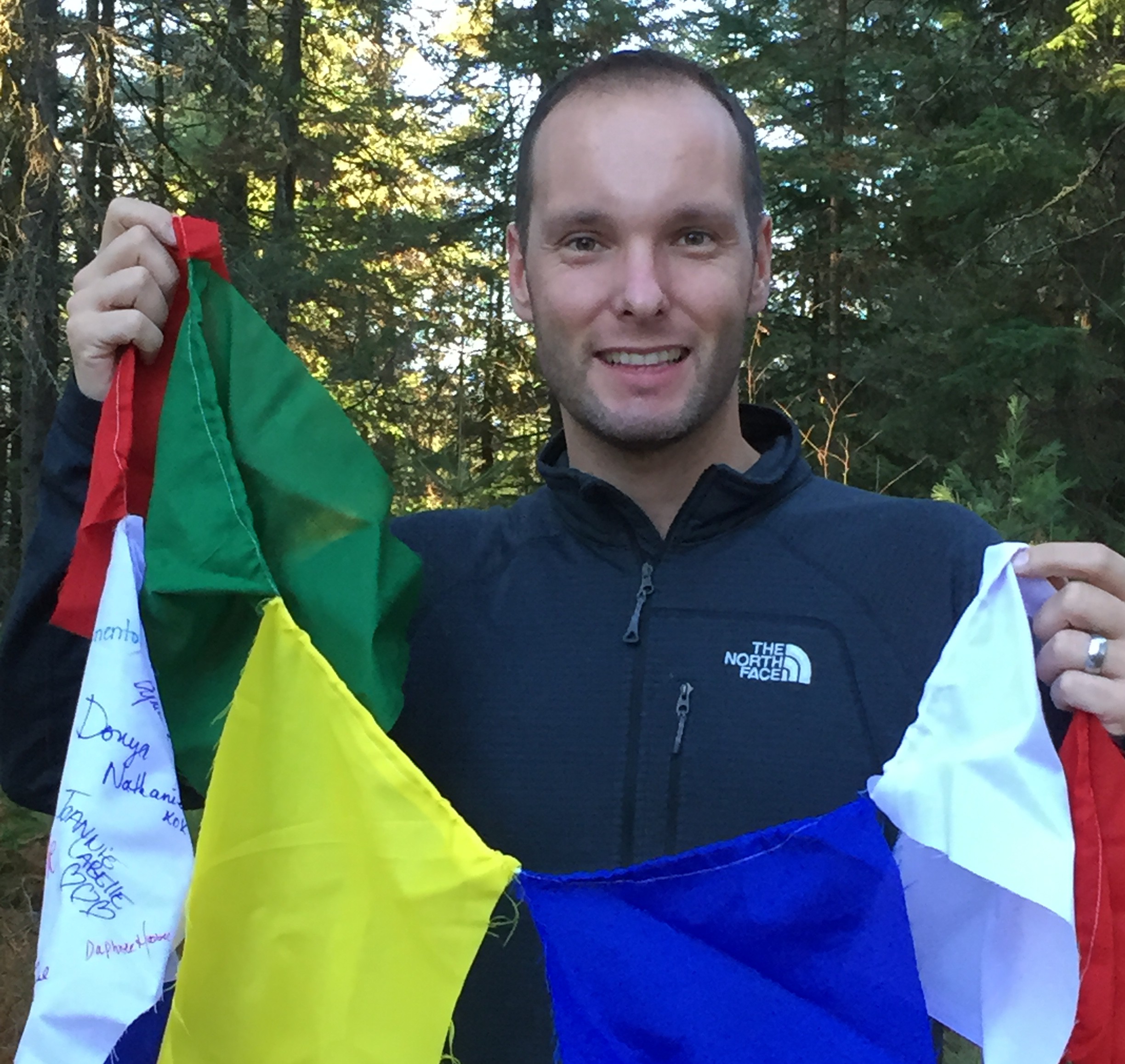 Pour amasser les fonds, il vend entre autres des drapeaux de prières bouddhistes à 50$, où les acheteurs peuvent écrire un vœu. Comme la tradition tibétaine le veut, le randonneur suspendra ensuite ces drapeaux multicolores au passage des cols de la montagne de l’Everest, où le vent dispersera les vœux.