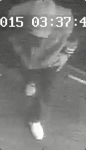 Le second suspect de stature moyenne portait un manteau foncé avec un logo blanc sur l’omoplate droite, un chapeau de pêcheur, un pantalon et des chaussures foncés.
