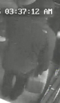 Le troisième suspect de stature mince portait un chandail de type kangourou et un pantalon foncé, ainsi que des souliers foncés avec des lignes sur les côtés et des semelles blanches.