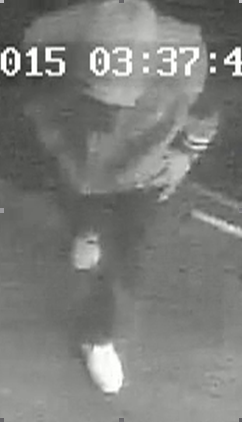 Le troisième suspect de stature mince portait un chandail de type kangourou et un pantalon foncé, ainsi que des souliers foncés avec des lignes sur les côtés et des semelles blanches.