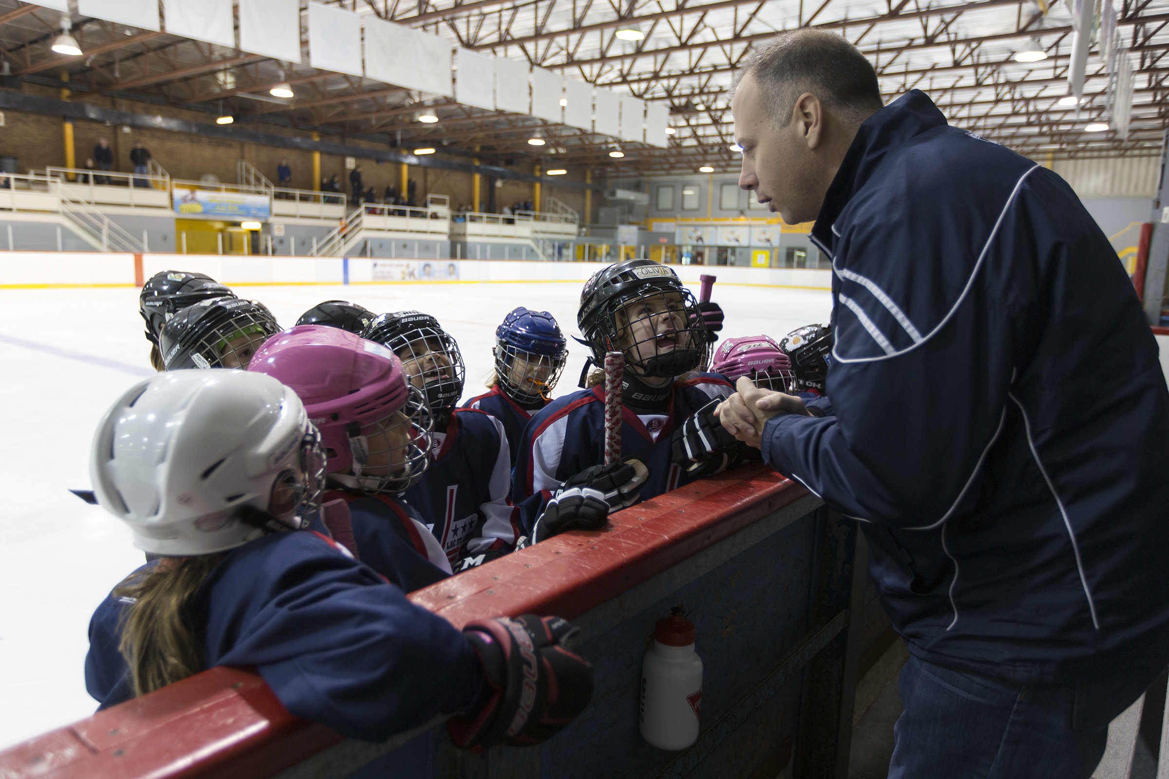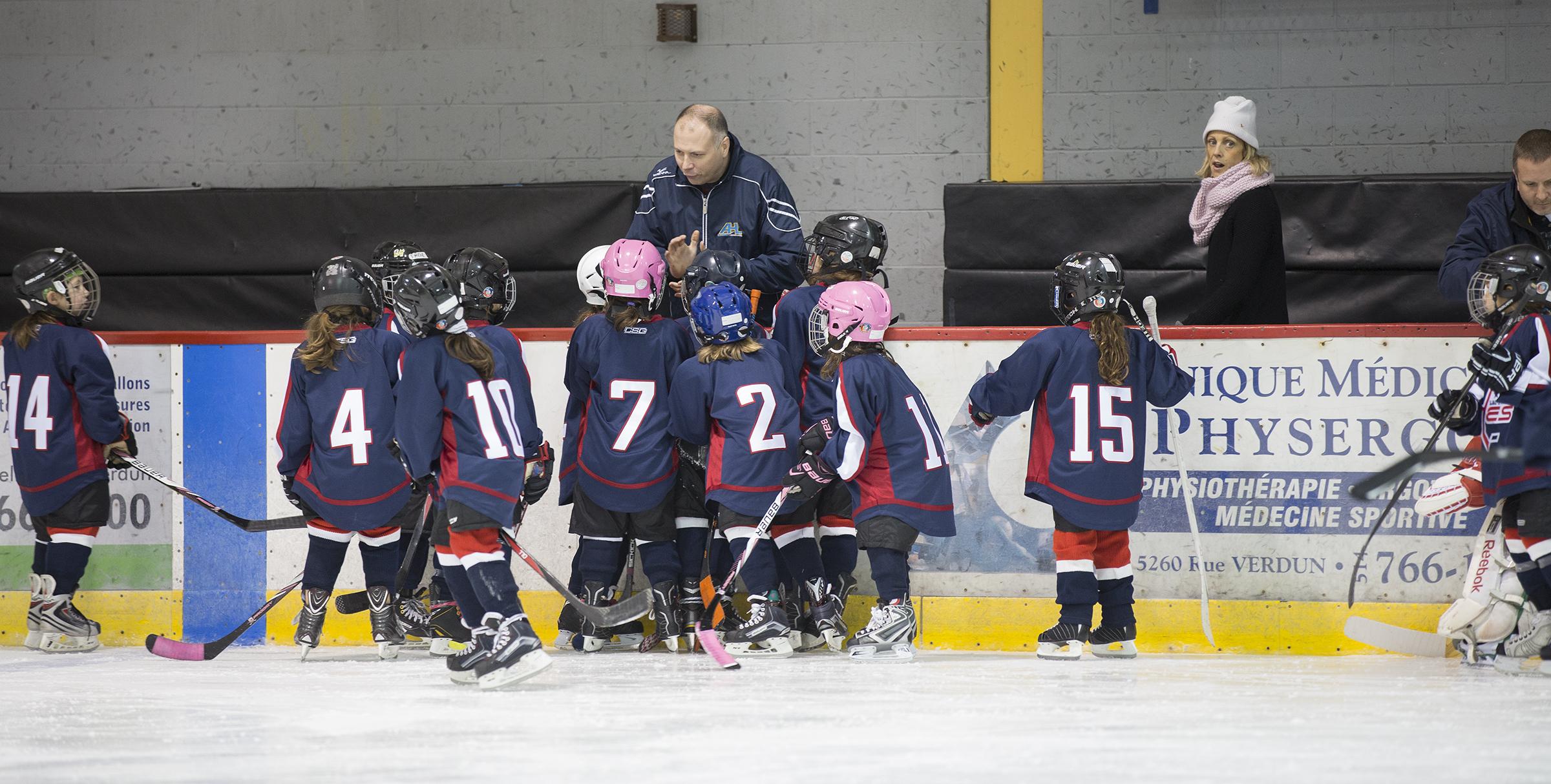 There is only one girls hockey team in Montreal if you were born in 2007-08, and before the 17 players formed the novice Lac-St-Louis Elites, they could play on a team for their level, mixed with boys—so maybe one or two girls per team.