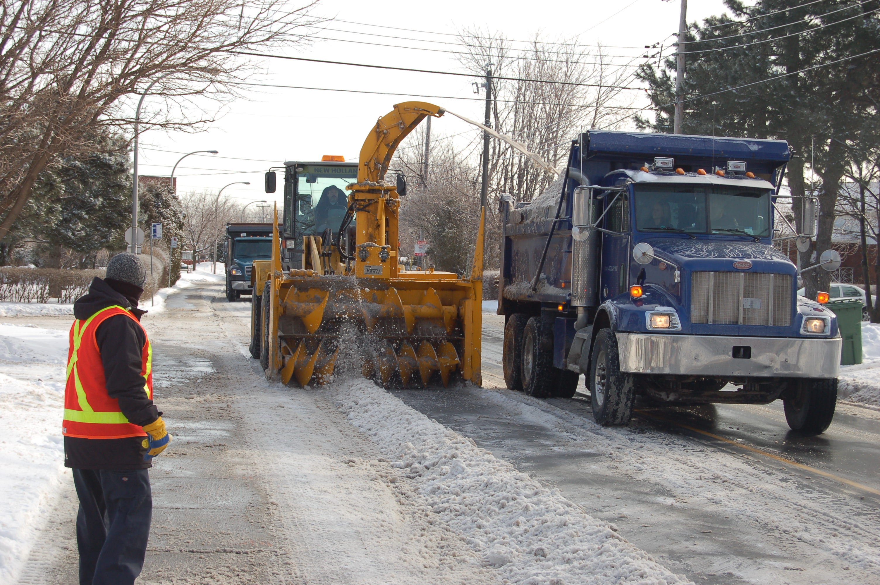 À Dorval, la priorité de déneigement est donnée aux rues principales et aux circuits d’autobus. La neige est seulement transportée dans les cas où l’épandage de sel est nécessaire ou lorsque l’espace pour circuler est insuffisant.