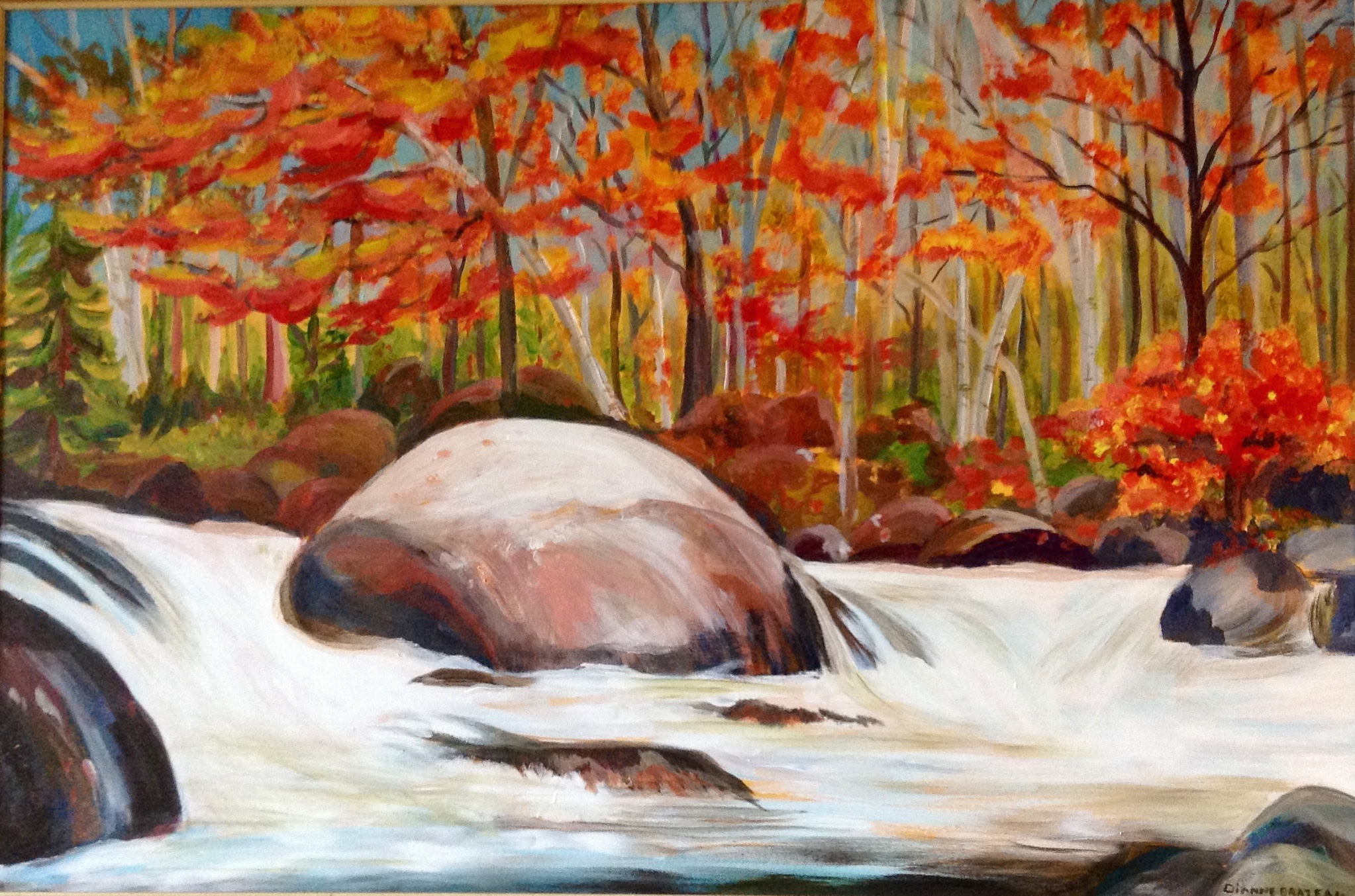 The artist loves to paint outdoors, especially near water. « The sound of water just invigorates me. » Though she has a special place in her art for trees. « Trees are magical. » Her favourite type of tree to paint is birch. Her preference is painting outside, but when it’s cold out, Brazeau can paint completely from memory.