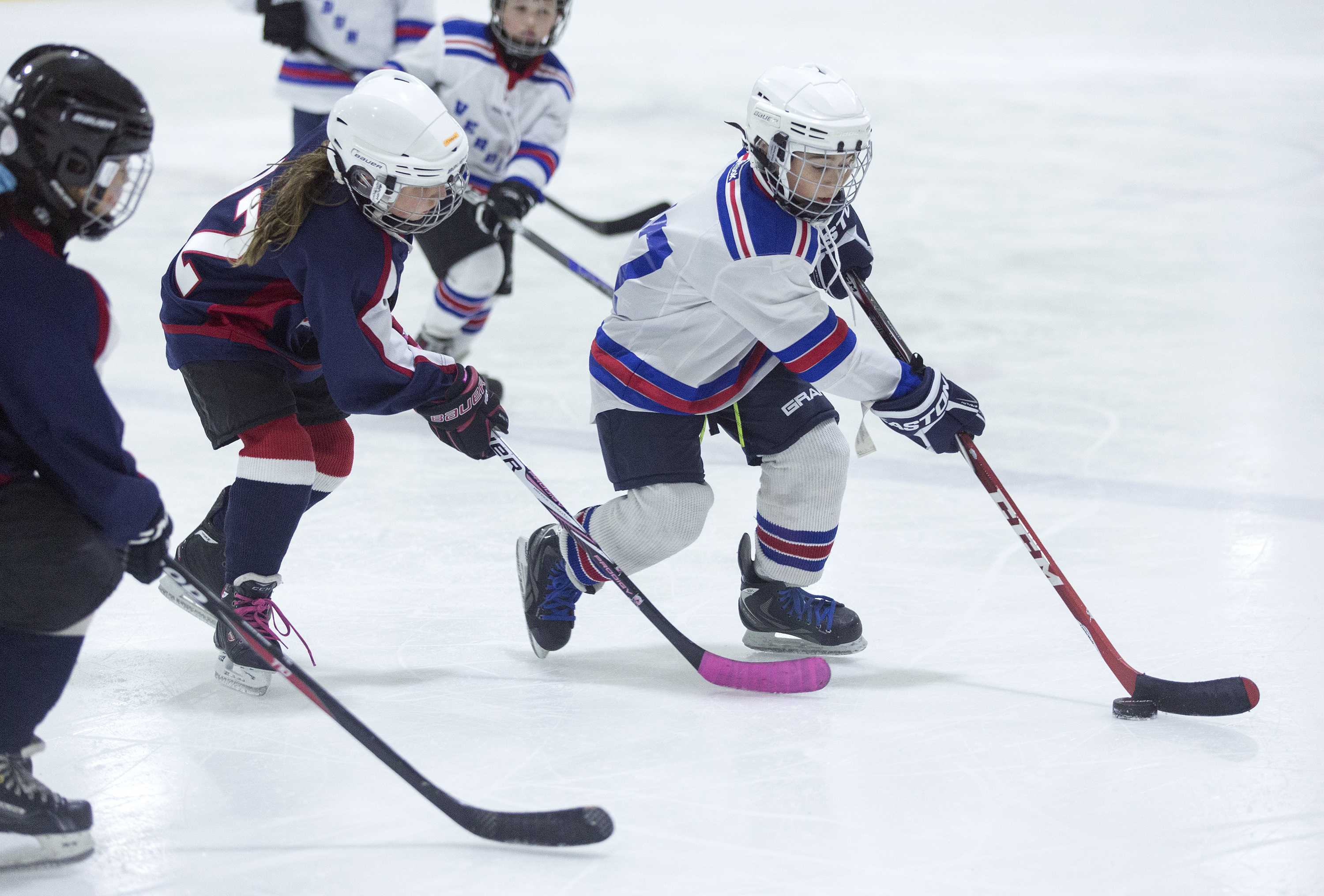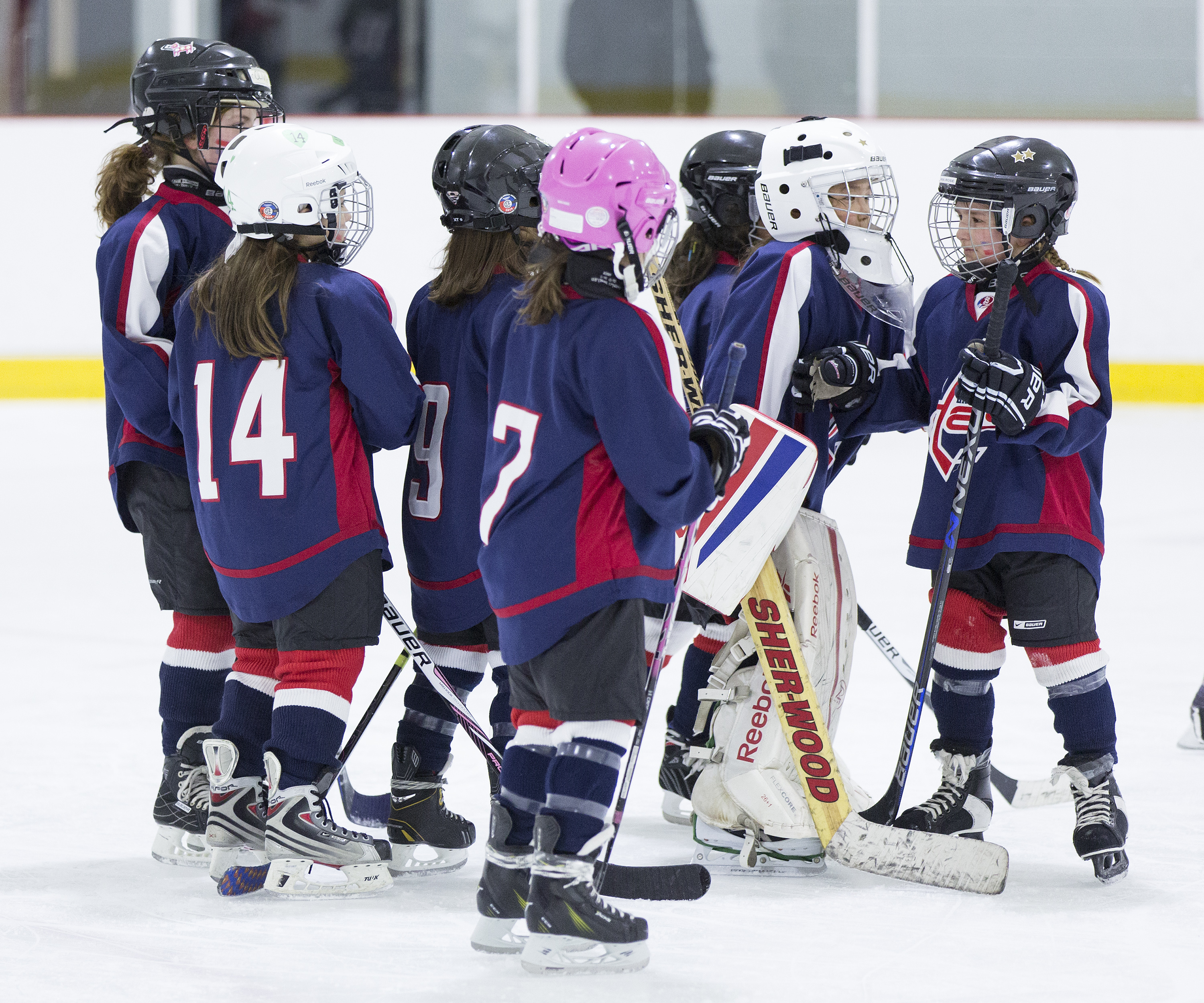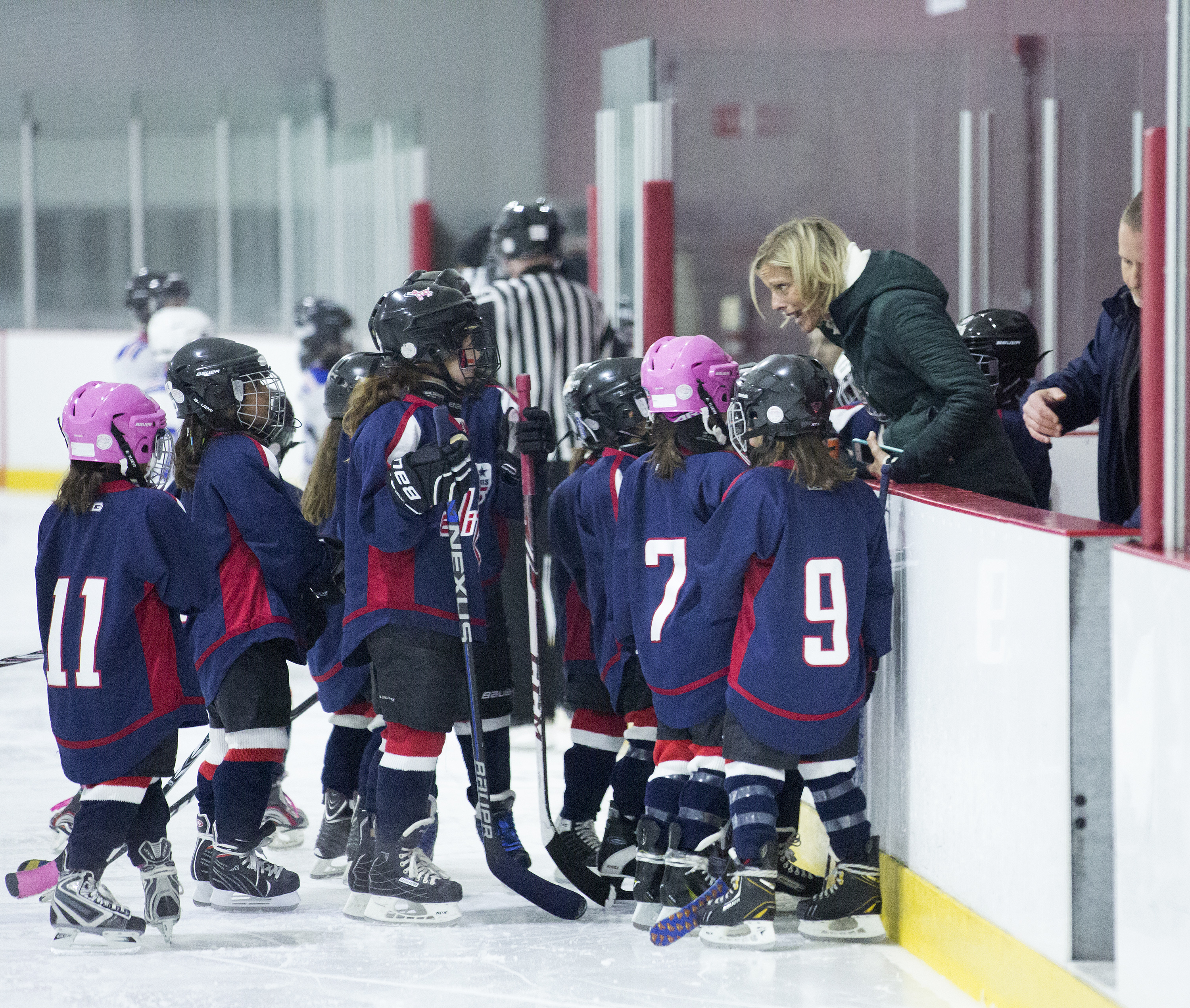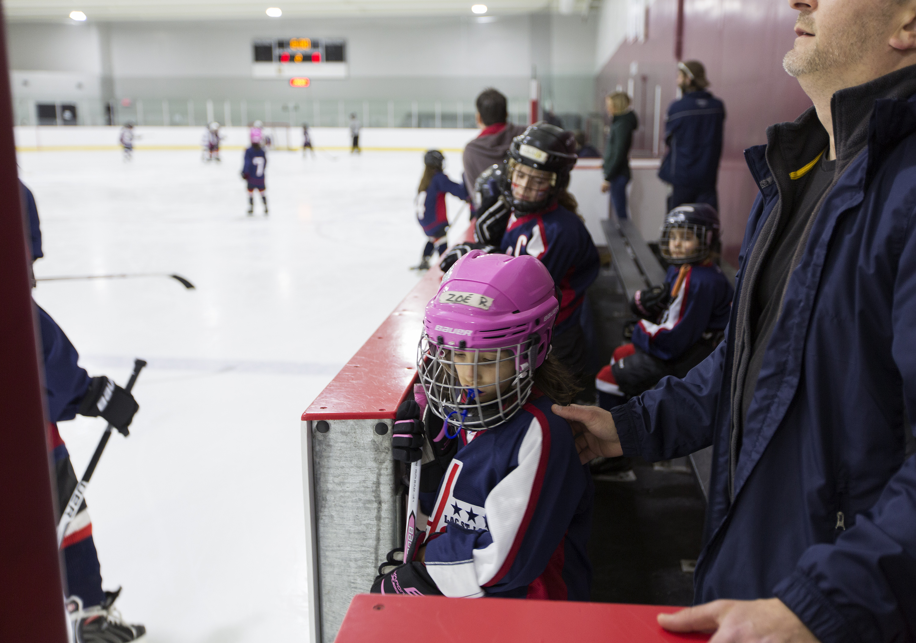 For the girls on the team, the determination in their sport is clear from their commitment on the ice, but they’re not only improving as players. Instead of feeling isolated on a mostly boy’s team, Olivia has 17 new girlfriends. “It’s much more fun because all of the girls like to play together and everybody invites everybody to play,” she said. The girls will often come to practice early to exercise and play together, and are friends off the rink.
