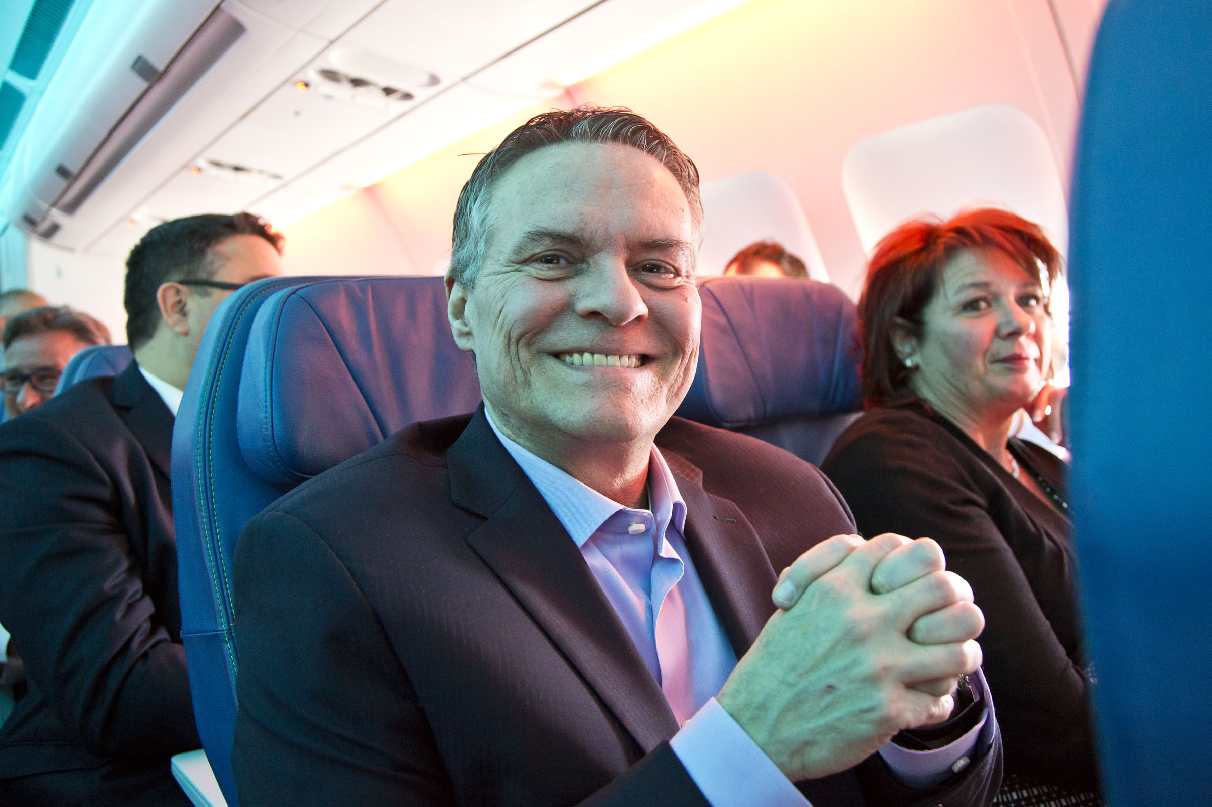 Son voisin de siège, le pdg d’Air Transat Jean-François Lemay, qui s’est même transformé en agent de bord, se réjouit du succès de l’événement.