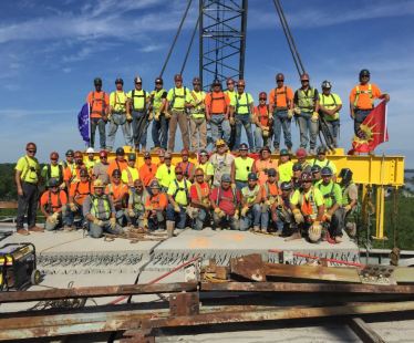 Cette année, 78 dalles de béton préfabriquées ont été installées à la jonction des rampes d’accès de la Rive-Sud. Au total, depuis 2008, 982 dalles ont été nécessaires pour compléter l’ensemble du nouveau tablier du pont.