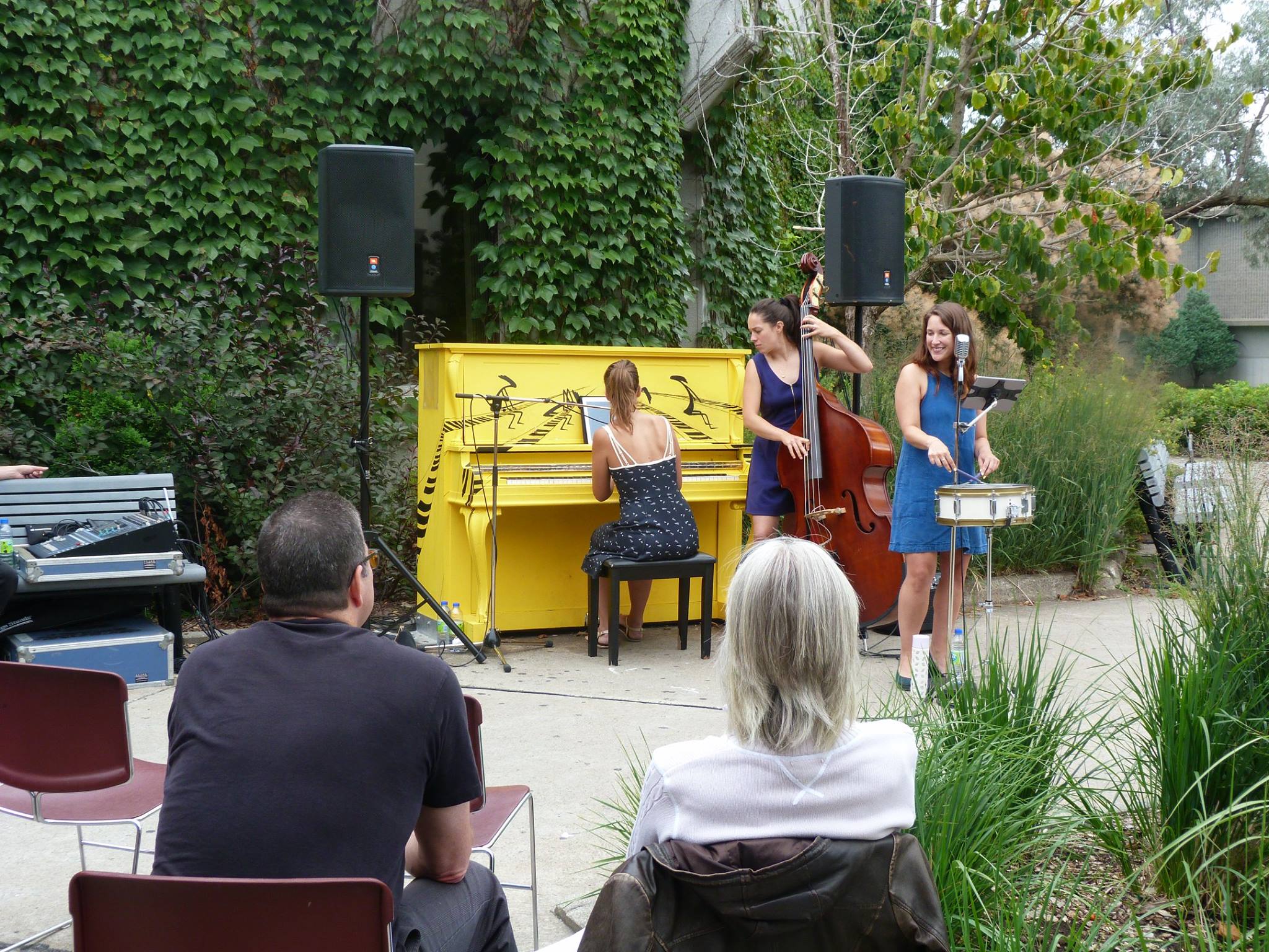Devant les portes de L’Octogone, le trio féminin a donné une ambiance jazzée et chaleureuse en interprétant des pièces telles que Summer time, Hit the road Jack!, Fever et plusieurs autres. La prestation laSalloise s’est terminée par une ovation debout du public.