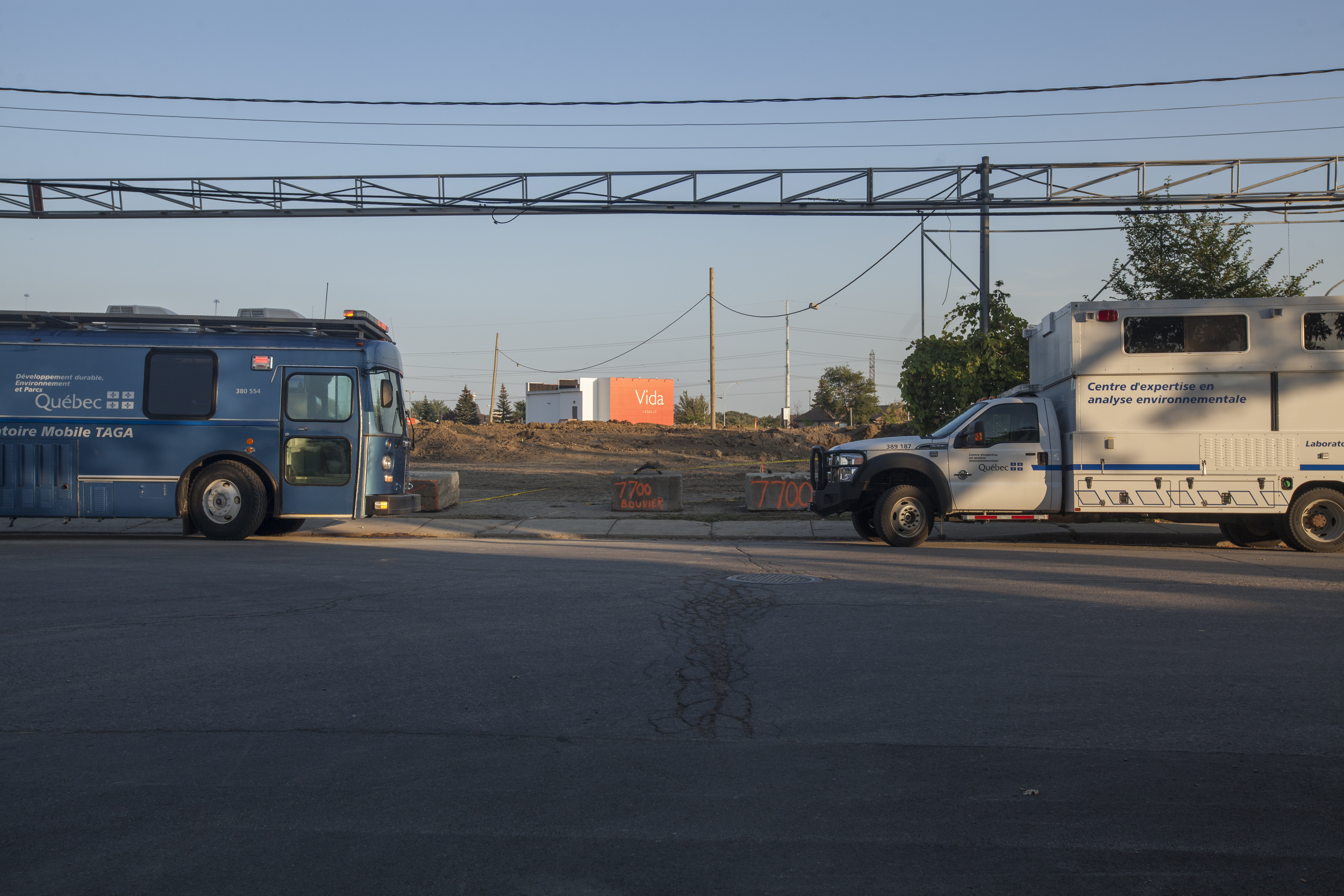 Des barils laissant émaner une forte odeur ont été découverts mardi lors de travaux d’excavation à l’intersection de la rue Bouvier et du boulevard Shevchenko, dans l’arrondissement LaSalle. Une équipe d’Urgence-Environnement et le laboratoire mobile TAGA (analyseur de gaz atmosphériques à l’état de trace) sont sur place afin d’analyser les substances présentes dans l’air.