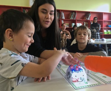 Les enfants se sont familiarisés avec des robots tels que le Bee-Bot qui développe leur esprit logique ainsi que leur orientation spatiale. Ils ont également appris à dompter Kibo, qui se déplace librement au sol et peut être équipé de différents capteurs entièrement programmables grâce à un système de code à barres.