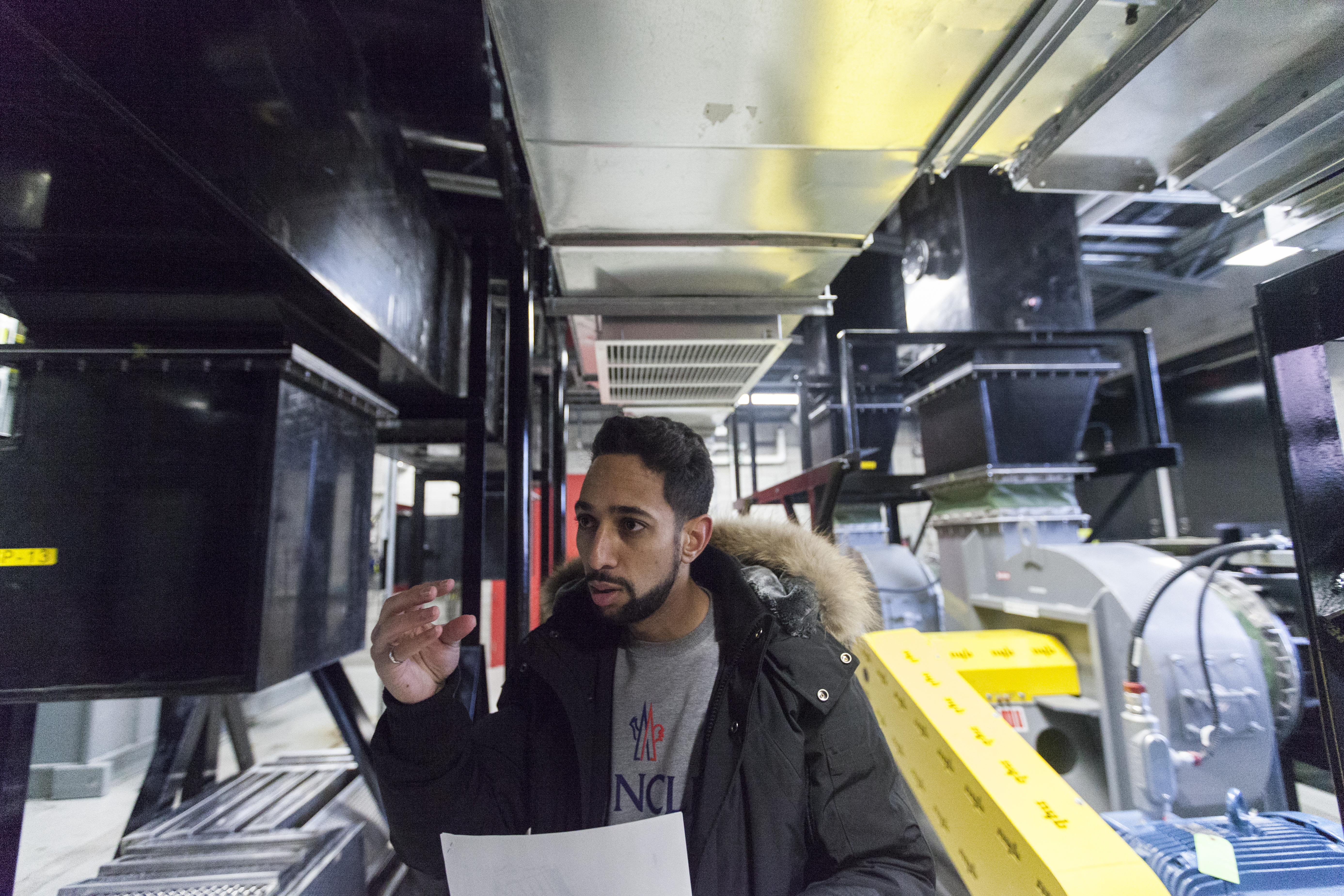 «L’air nauséabond est aspiré et traité sur près de 2 km entre l’avenue Lafleur et la 75e Avenue», lance Amine Hamdache, stagiaire en ingénierie auprès de la Ville de Montréal.