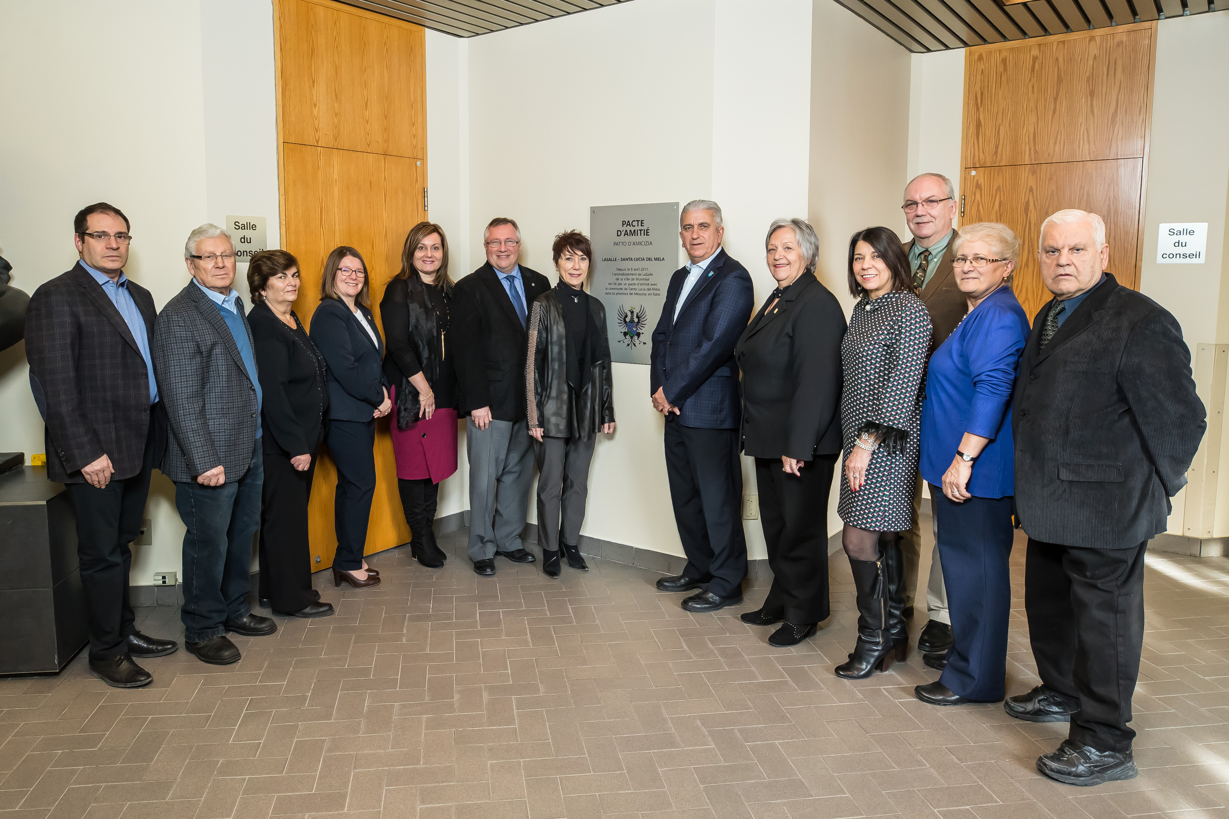 Dans le but d’honorer le pacte d’amitié entre LaSalle et la commune de Santa Lucia del Mela en Italie, une plaque a été installée à l’entrée de la salle du conseil de l’arrondissement.