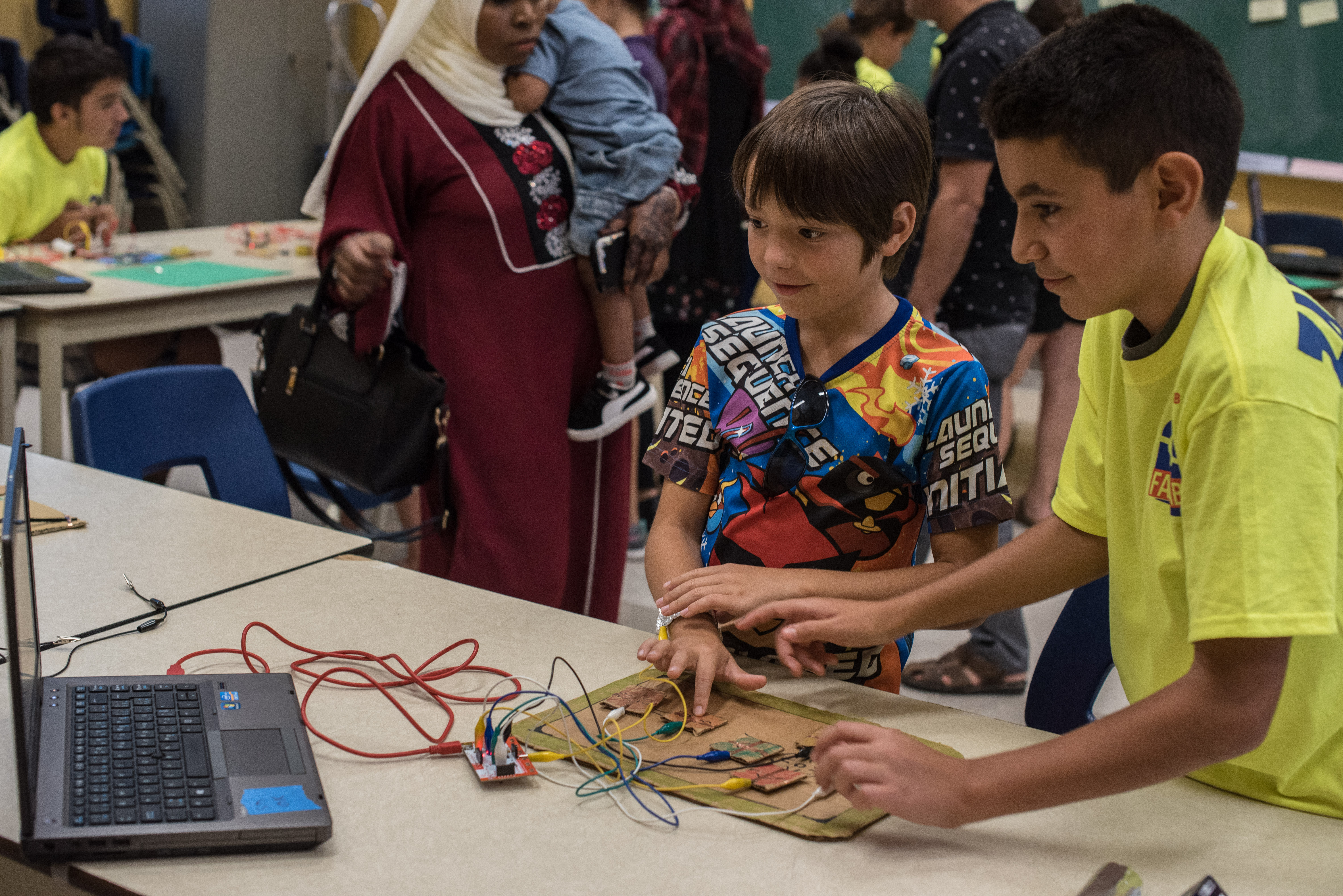 Les enfants ont expliqué aux parents, amis et élus les différentes phases de création de leurs objets lors d’une exposition à l’école secondaire Cavelier-de LaSalle, le 24 août. «Ils n’ont pas juste refait ce que le moniteur leur montrait, ils l’ont compris, appris et ont été capables de le retransmettre», lance Julie Grenier, conseillère pédagogique.