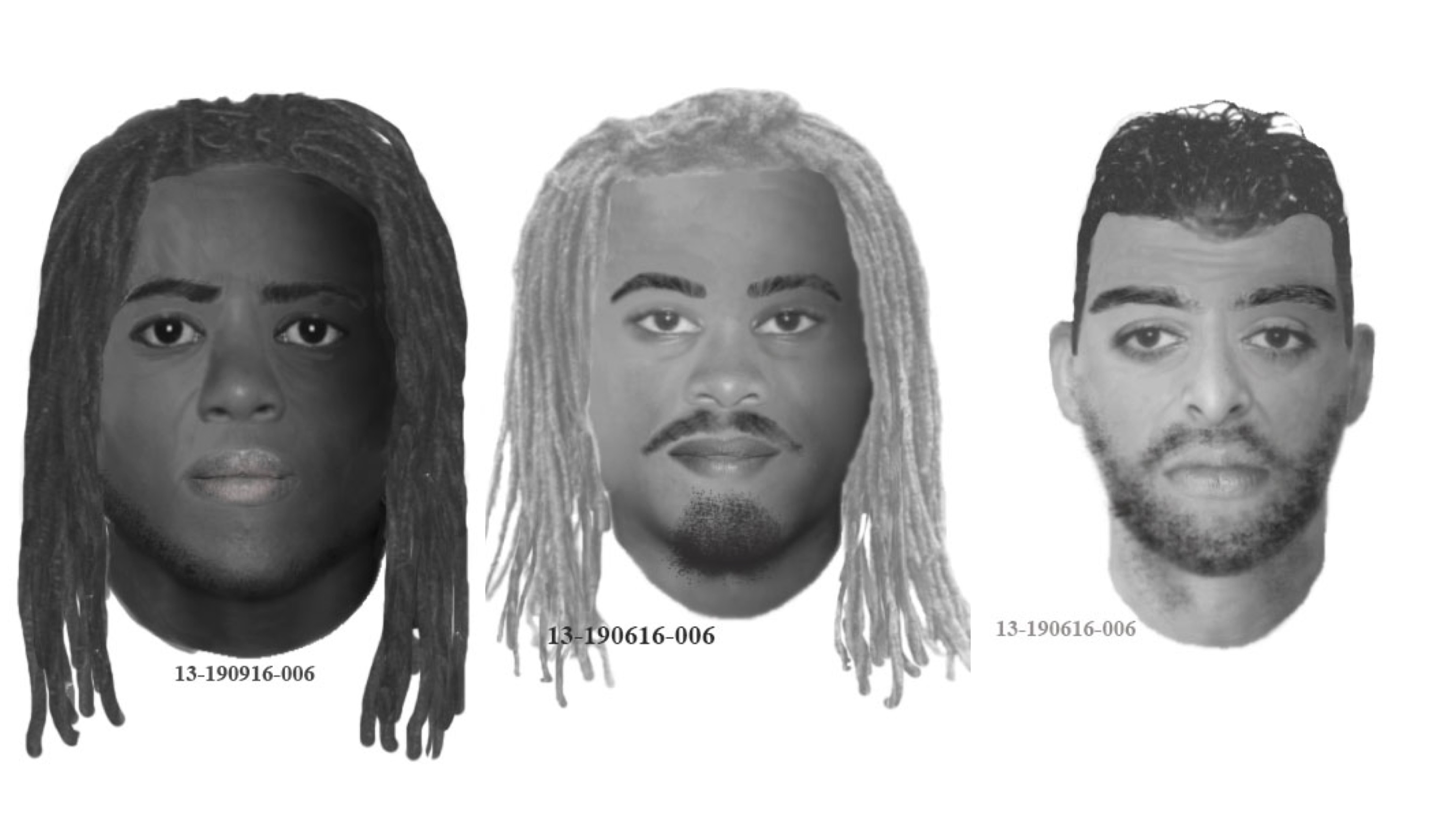 Le premier suspect a environ 25 ans, a les yeux bruns et des cheveux noirs en dreadlocks. Il mesure environ 1,75 m, avec une stature corpulente.